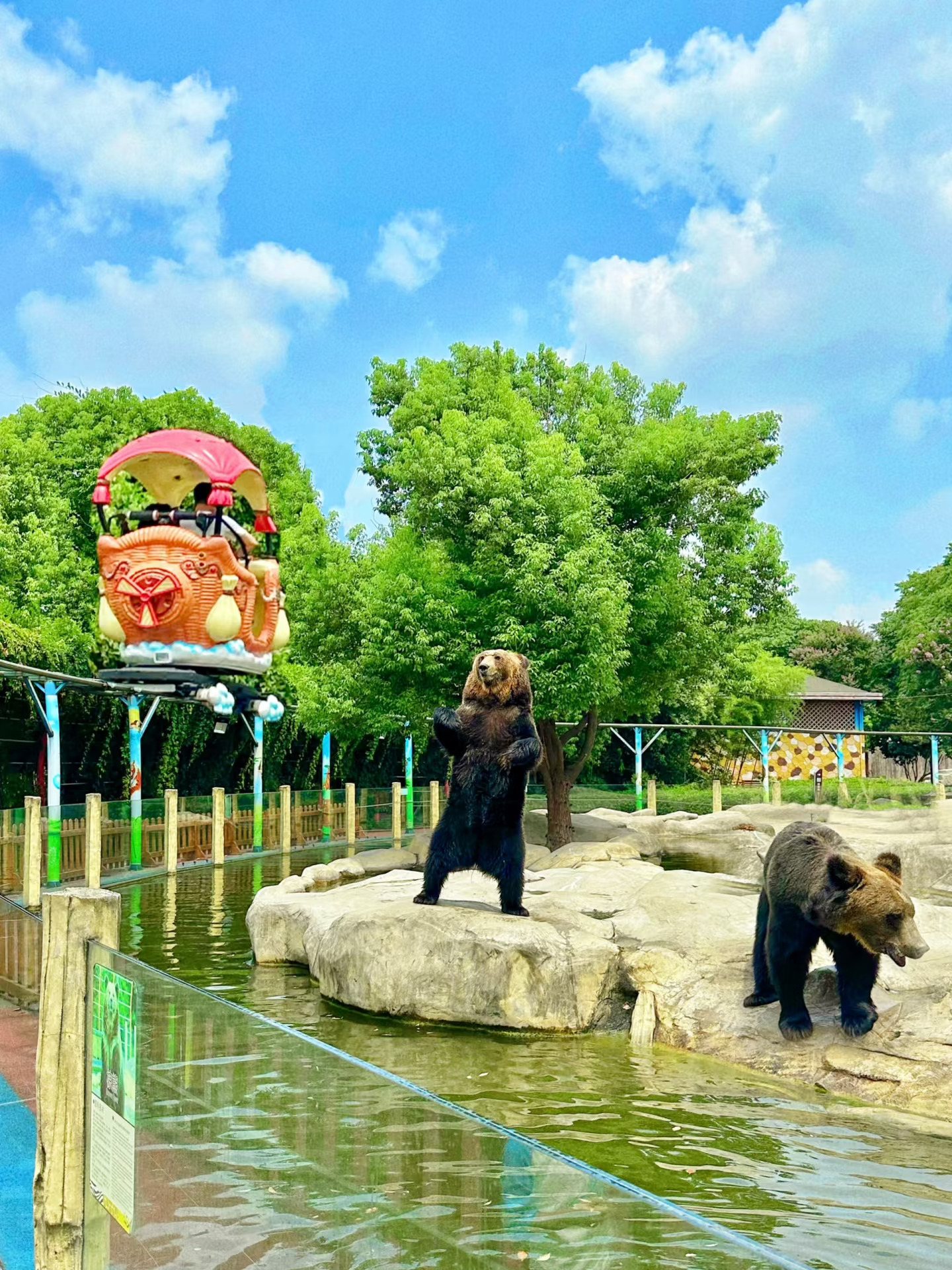 👣步行区:可以步行游览,也可以租电动车。一路上有树荫,不怎么晒。步行区路线:进门后右转—熊抓鱼—摩天轮—花果山—大熊猫馆—花鸟世界—国际大马戏—涉禽区—长颈鹿—红熊猫馆—小动物幼儿园—企鹅馆。