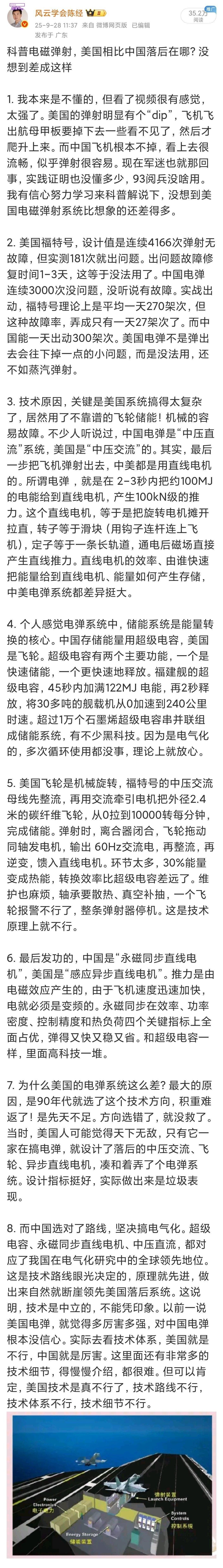 我是笑不动了,正好前阵子学习了电磁弹射,震惊地发现中国电弹技术先进表现很好,美国的技术方向错误,成灾难了。根源是中国采用超级电容储能,短时间释放能量加速推动战机,而美国是用不靠谱又复杂的飞轮储能,能量转换效率低还加上了机械的麻烦。
