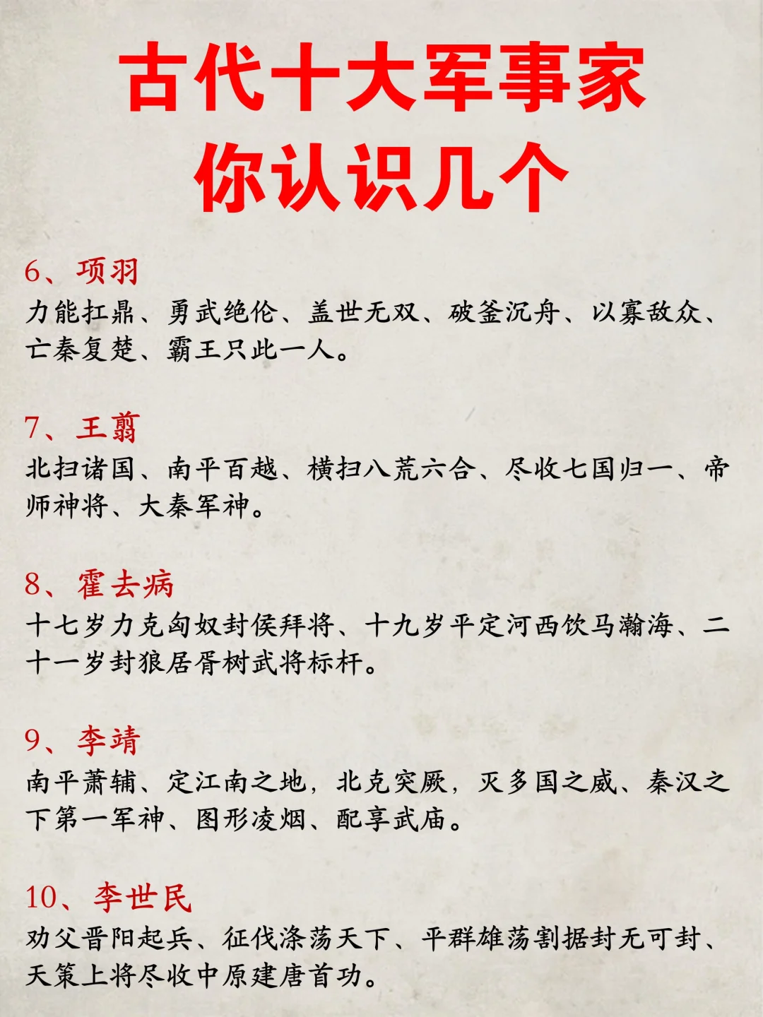 古代十大军事家一览!都是大神级别! 📕在历史的悠悠长河里,战争仿若一个如影随形的幽灵,自远古起始,便几乎未曾缺席过任何一个古代时期的舞台。 📕遥想远古之时,炎黄二帝间爆发的阪泉之战,恰似这漫长战争序列的开篇序曲,自此之后,战争与文明的发展进程便相互交织、彼此缠绕,宛如双股麻花绳一般,二者携手合作,共同勾勒出一幅绚丽多姿、波澜壮阔的历史巨制。