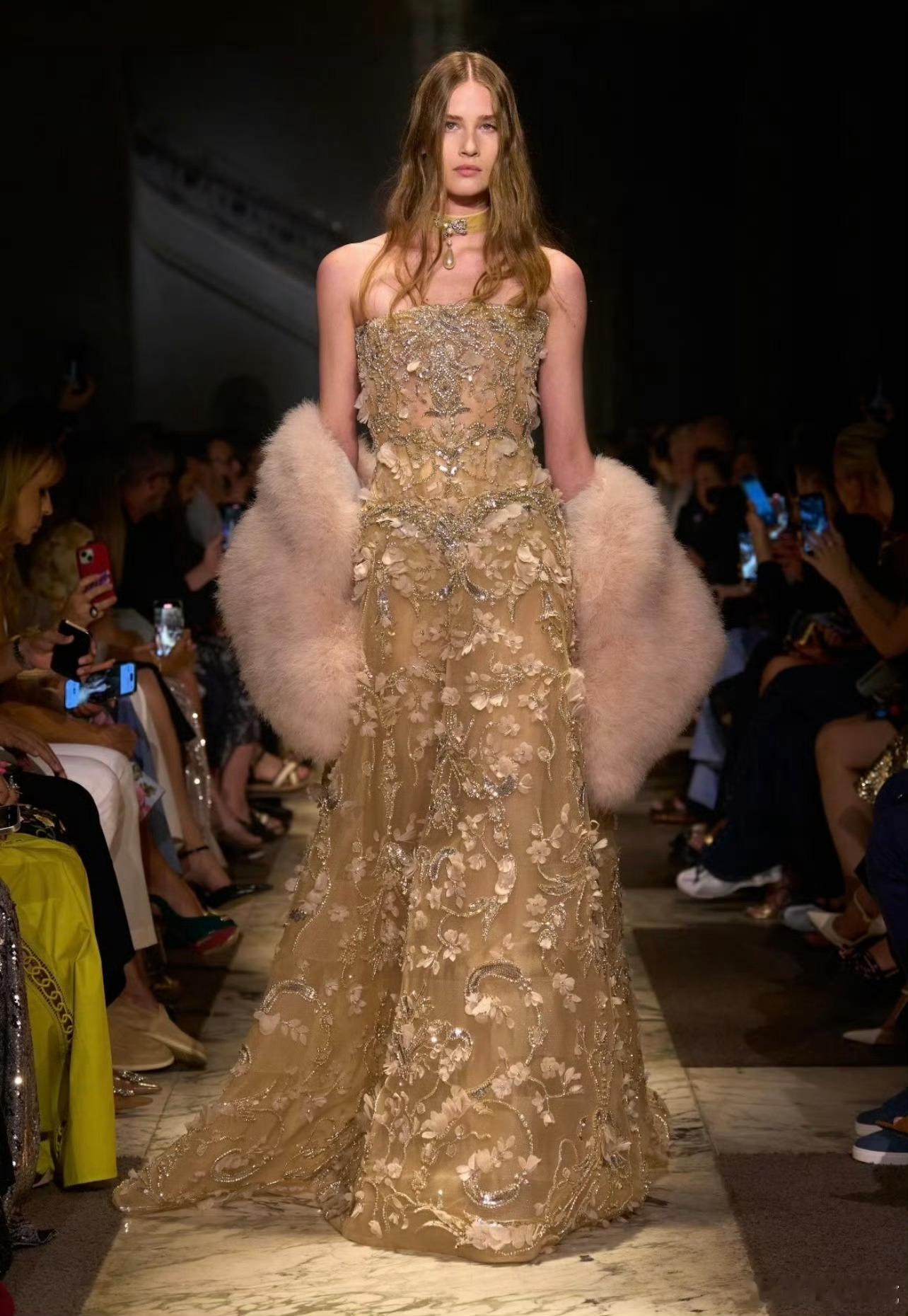哇哦,好美的彤姐!受邀出席ELLE风尚大典活动,关晓彤以一身重磅的Elie Saab 2025秋冬高级定制系列礼服,搭配Fred高级珠宝即将亮相,花朵与钉珠刺绣点缀的金色抹胸裙装,搭配粉色毛绒披帛造型优雅贵气,海风吹拂、发丝飘扬间美丽而浪漫、张扬又瞩目!值得一提的是,这也是彤姐的第九套ES高定礼服~ ✨
