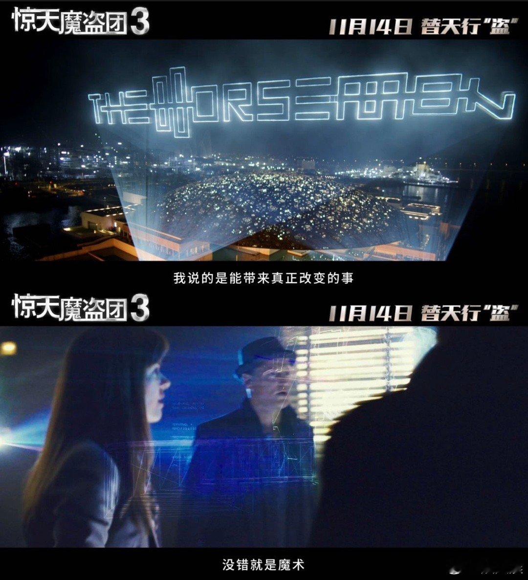看惊天魔盗团重燃魔术魂谁的2013记忆被唤醒了!当年守着电视看四骑士,现在新作直接集齐初代!比脸大的钻石说偷就偷,近身魔术贴脸“骗”人,11.14影院见,双十一最值的消费就是这张票!