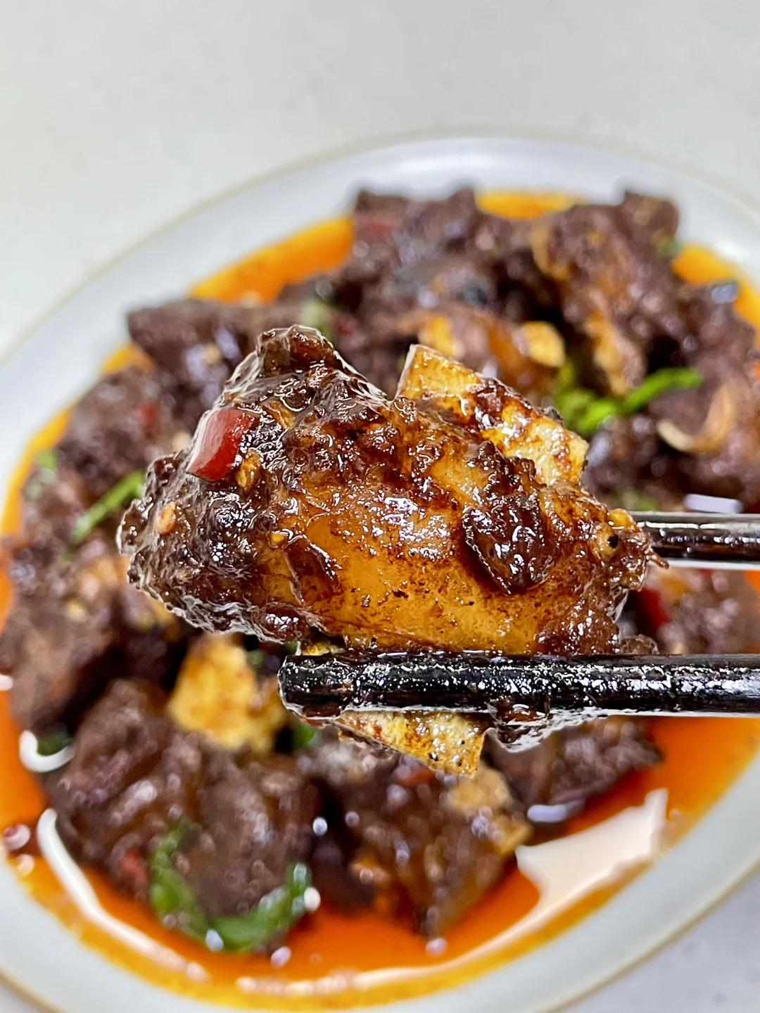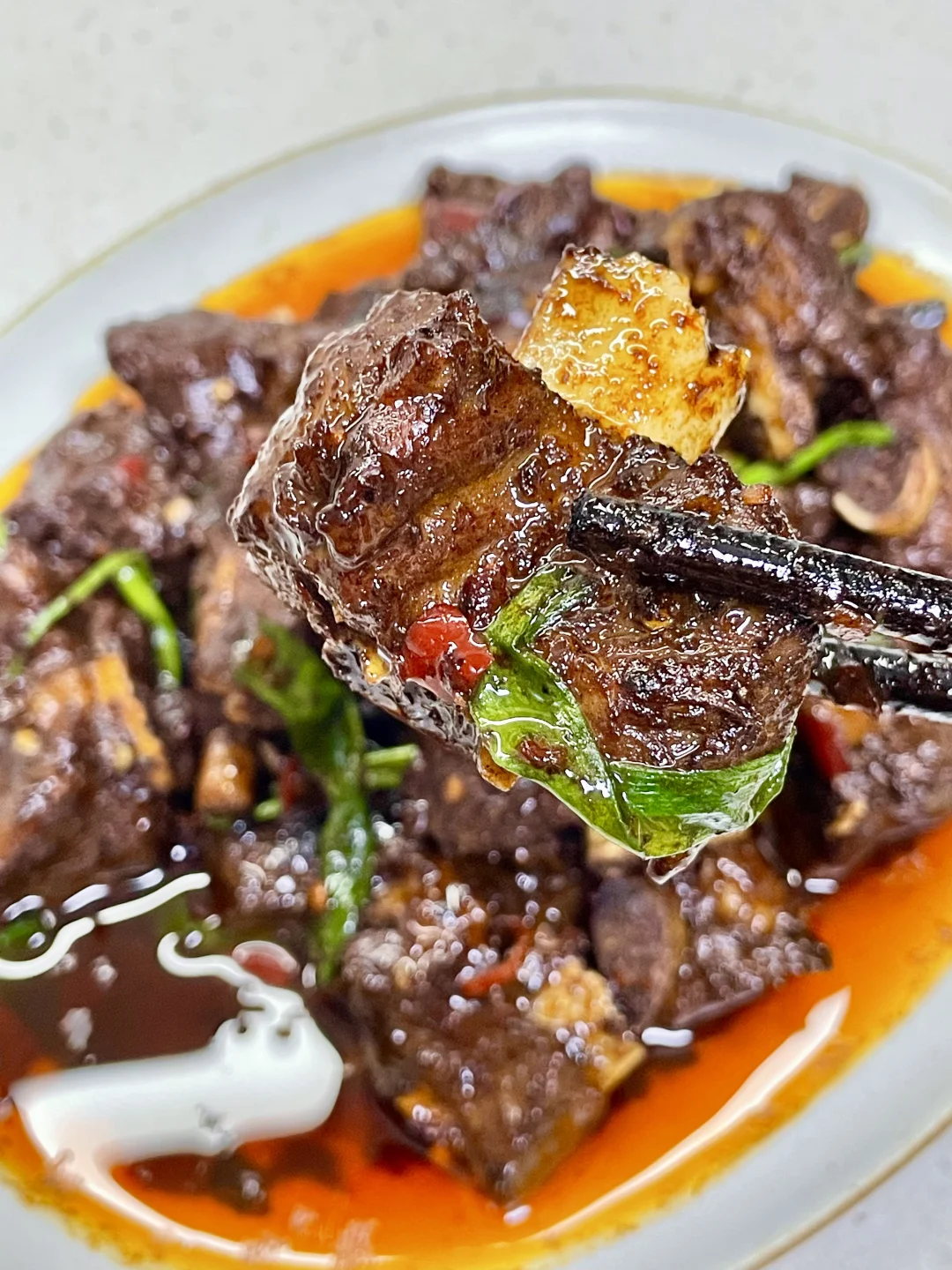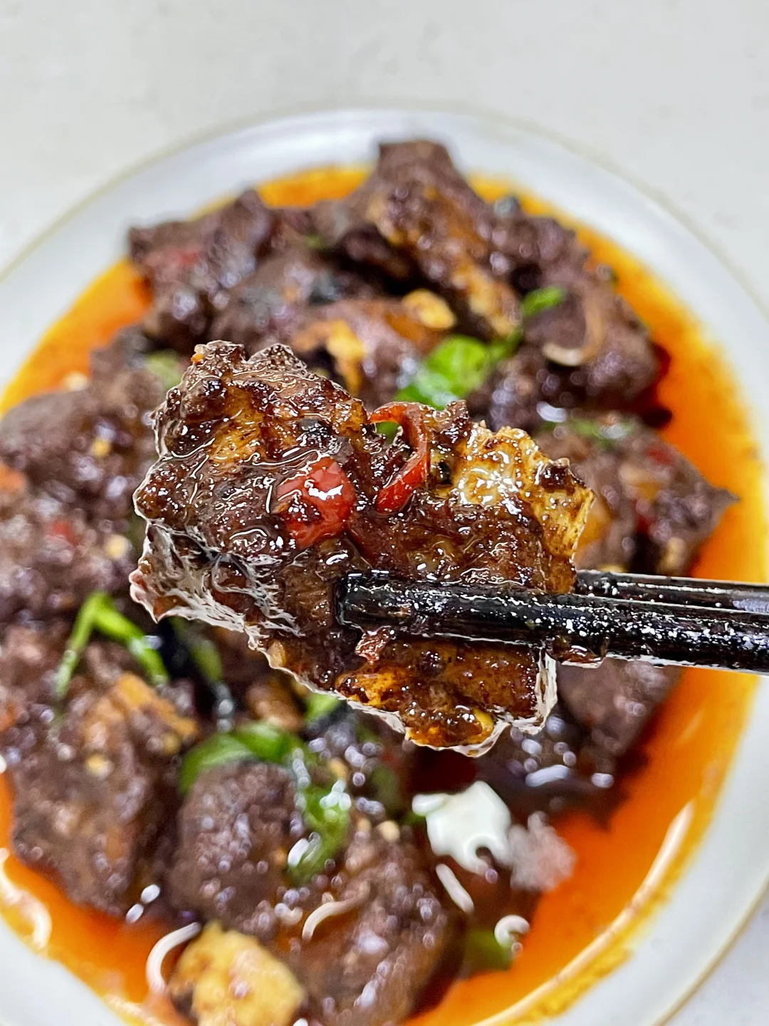 排骨这样做真的巨香巨好吃,做法简单,排骨软烂入味,超级香辣过瘾~ 1️⃣:排骨泡去血水,加入料酒 一勺蚝油 半勺老抽 少许胡椒粉抓匀腌制半小时 2️⃣:锅中油热放入排骨煎至两面微焦,放入小米辣蒜末爆香,再加入一勺生抽蚝油 一勺黄豆酱 半勺老抽 多多的辣椒面炒香 3️⃣:加入多一点的开水没过排骨,盖盖水开转小火煮1个小时左右(中途注意观察水量防止烧干)煮至排骨软烂,大火收汁,撒上葱段炒匀即可