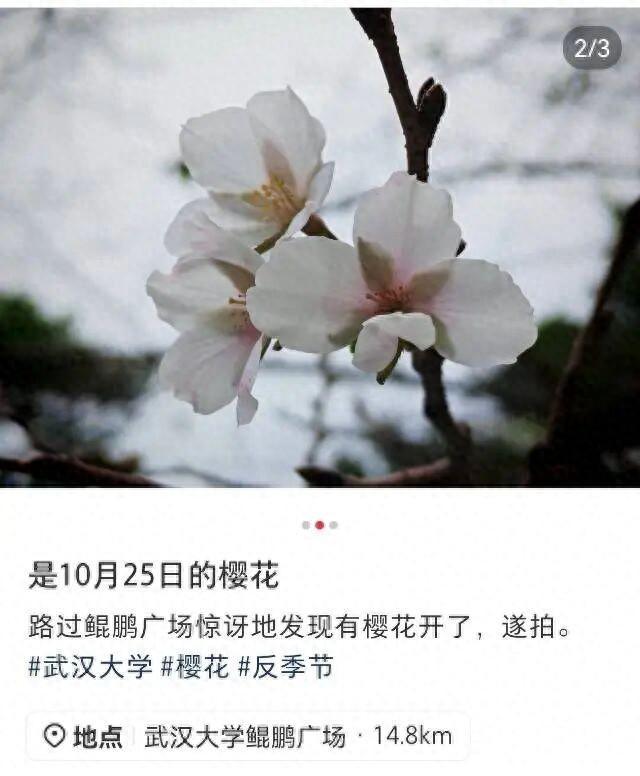 “气温的跌宕起伏导致植物‘内分泌’失调,也与植物个体差异有关。”武汉市园林建设管理站高级工程师廖梅英结合近期天气走势解释道,九月中下旬有一次陡然降温和升温过程,十月上旬武汉天气仍在回味火热夏天,此后冷空气猛烈降温,气温跌至个位数,又像是快进到了冬天,近几天又回升至“高温20℃左右、低温10℃左右”的春日氛围,气温如此迅速地大幅震荡,对植物伤害很大,给植物们发送了错误信号,有些自我调节能力差的植物就会“内分泌紊乱”,不知所措,误以为四季快速从夏到冬又到春天了,就懵懵懂懂地开花了……