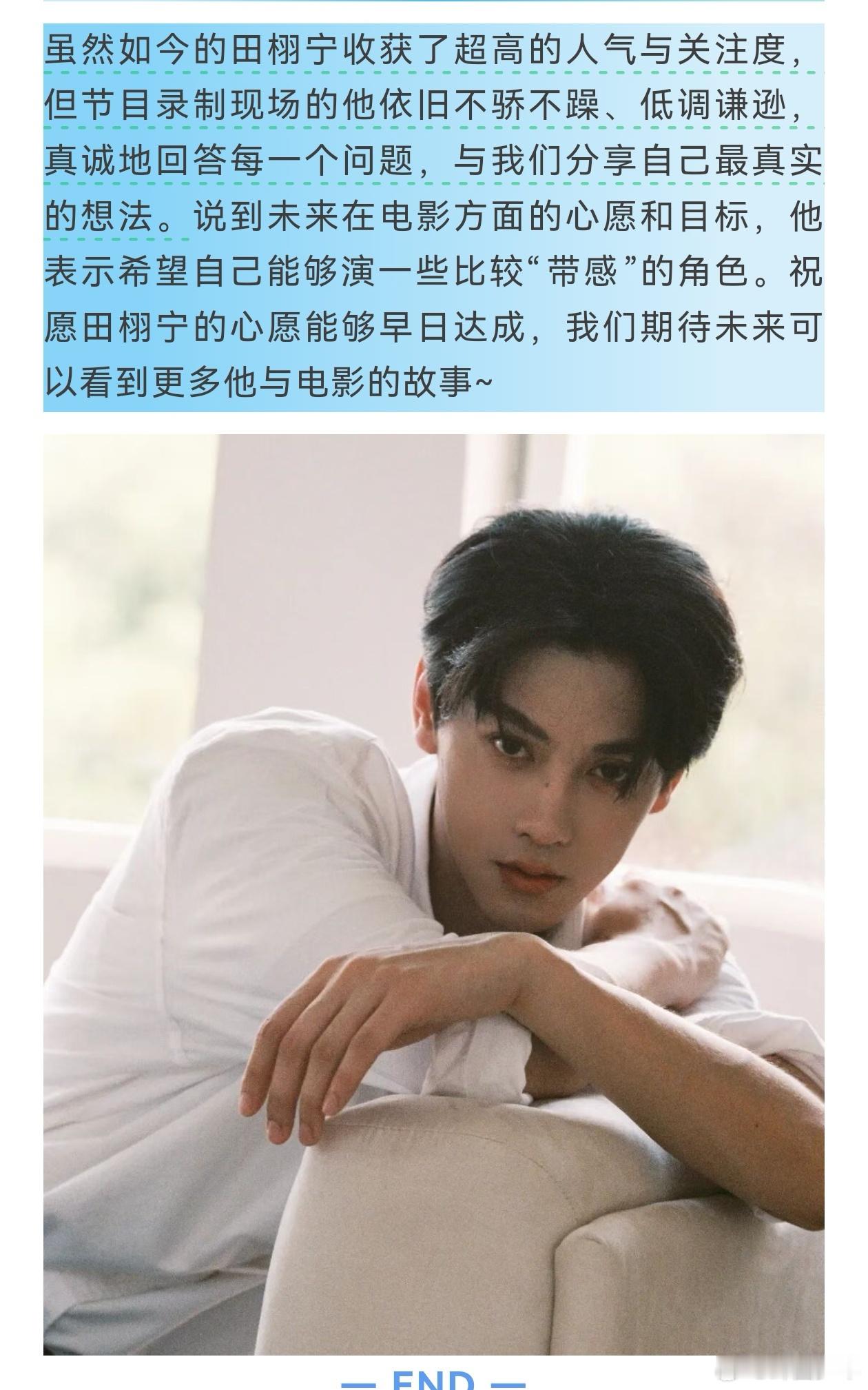 真实赤诚的田栩宁 从《光焰》的迷茫坚守到表演感知力的进阶,田栩宁在访谈里把“演员的自我修养”聊透了!崇拜朱亚文的真实、敬佩斯皮尔伯格的叙事,连对电影的理解都这么有深度,这波文化输出绝了!