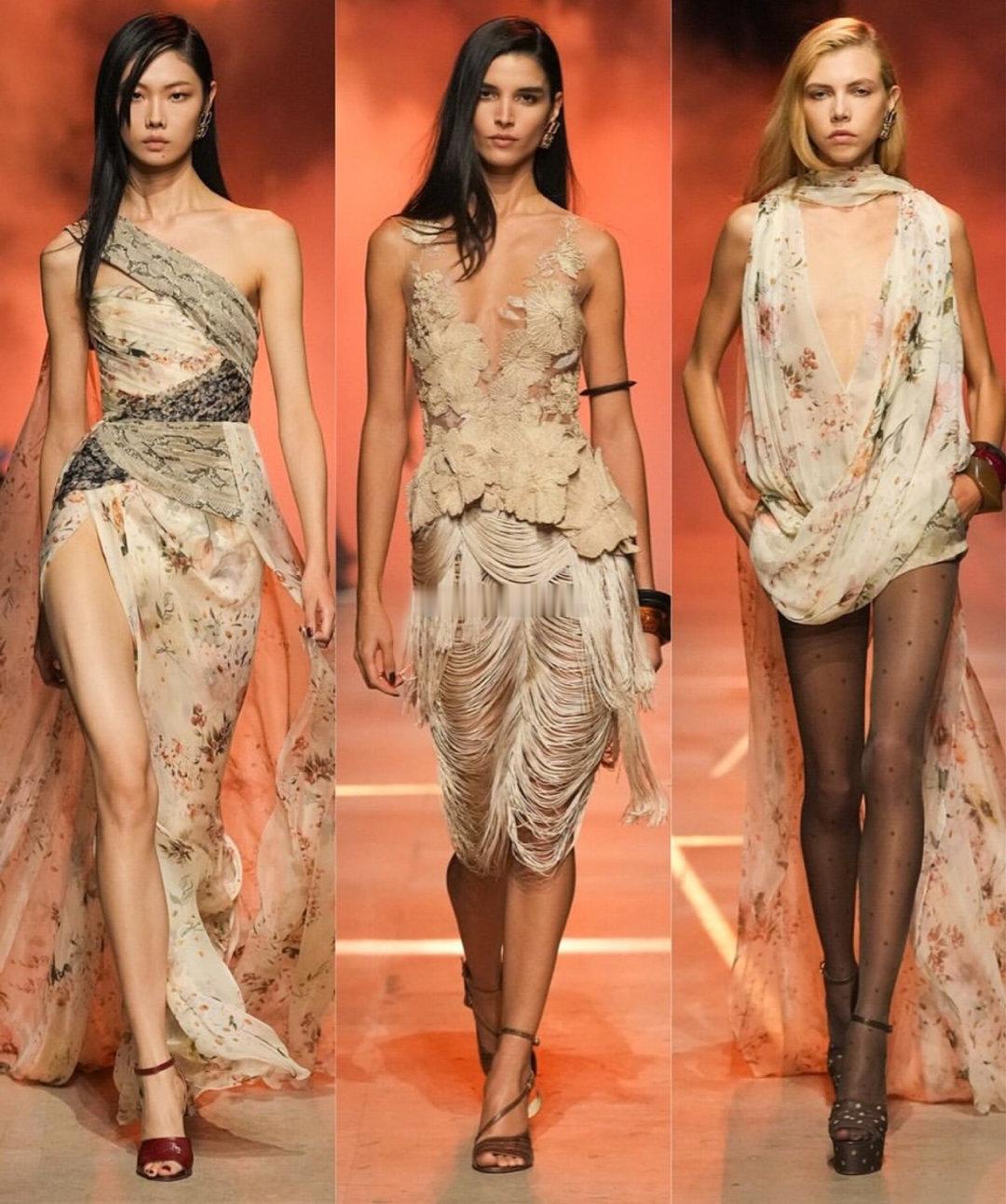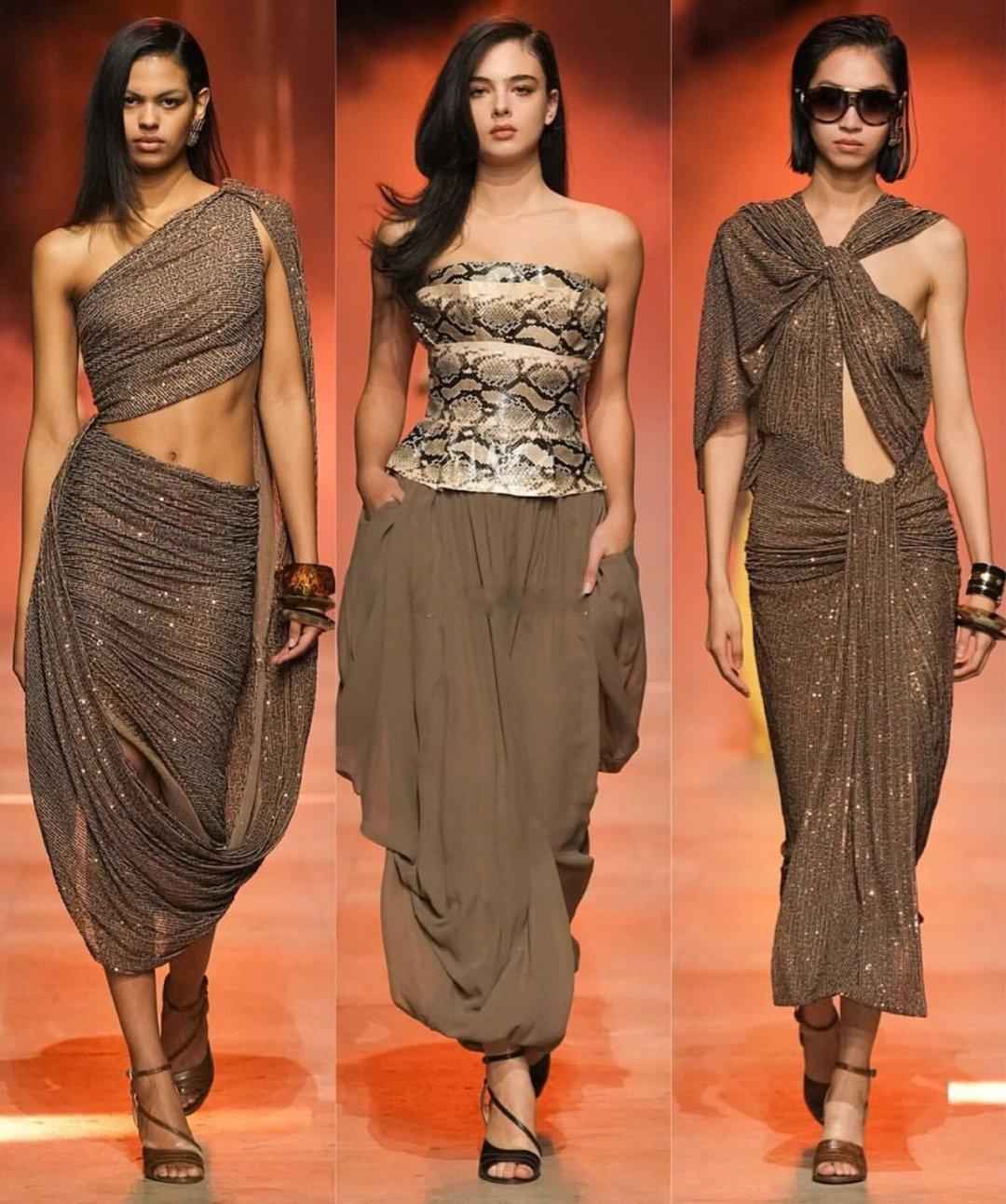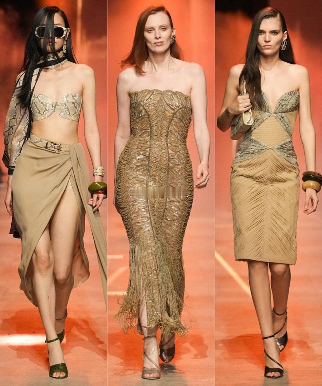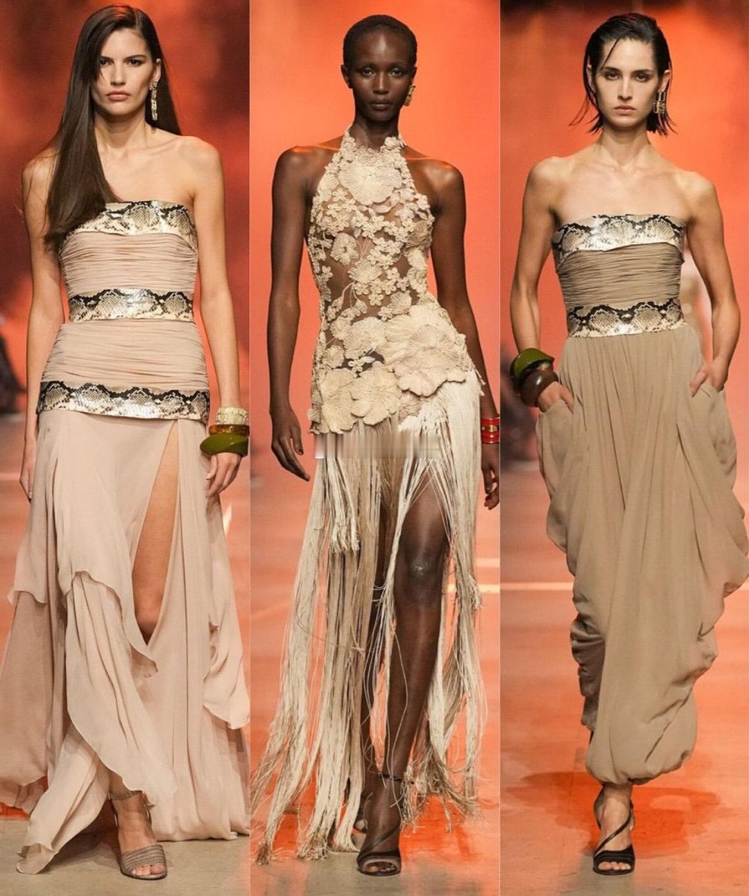 从具象到抽象的野性蜕变,动物纹,尤其是蛇皮纹,早已不再是狂野与不羁的单一标签。在Elie Saab的手中,它完成了一场优雅的进化。我们看到的并非张扬外放的攻击性,而是一种内敛的、充满智慧的危险魅力。