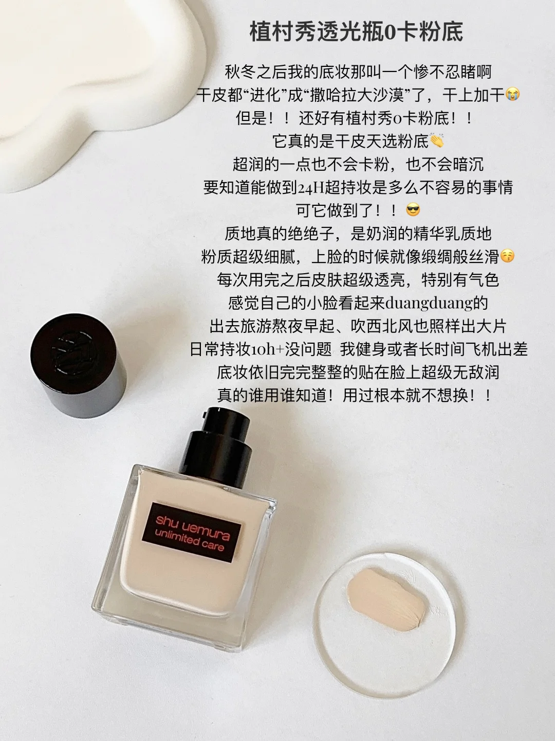 植村秀透光瓶:干皮天选,顶级持妆,又润又贴 迪奥凝脂:哑光遮瑕,适合需要高遮瑕的正式场合 玫珂菲无痕粉底:水润轻薄,伪素颜拿下 zelens:混油真爱,又奶油又持妆 香奈儿金砖:越夜越美,口碑两极分化但是本人很爱
