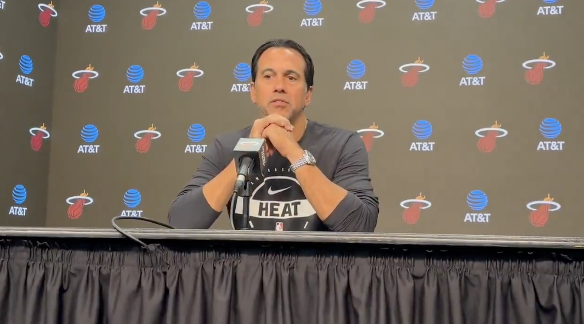 赛后热火主帅埃里克-斯波尔斯特拉接受记者采访时谈到了安德鲁-威金斯。