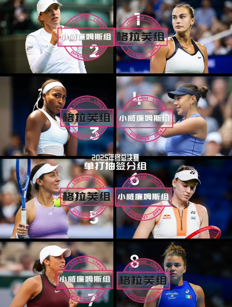 【1358与2467!宝总年终抽签最终还是没能避开萨巴伦卡!】 WTA利雅得年终总决赛小组抽签已毕,分组结果出炉: 格拉芙组: No.1萨巴伦卡 No.3高芙 No.5佩古拉 No.8保利尼 小威廉姆斯组: No.2斯瓦泰克 No.4阿尼西莫娃 No.6莱巴金娜 No.7凯斯 这里面,萨巴伦卡打保利尼最没悬念,萨巴伦卡打佩古拉悬念也非常小。格拉乔芙组比小威廉姆斯组好预判。