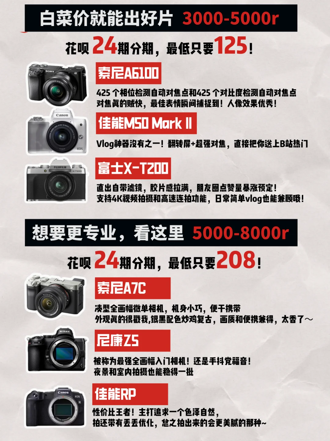 下面给大家分享几款性价比高的相机,都支持花呗分期哦!