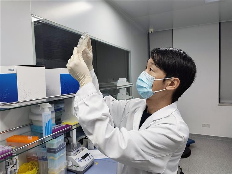 韩默在检查深海微生物分离培养实验的结果。受访者提供