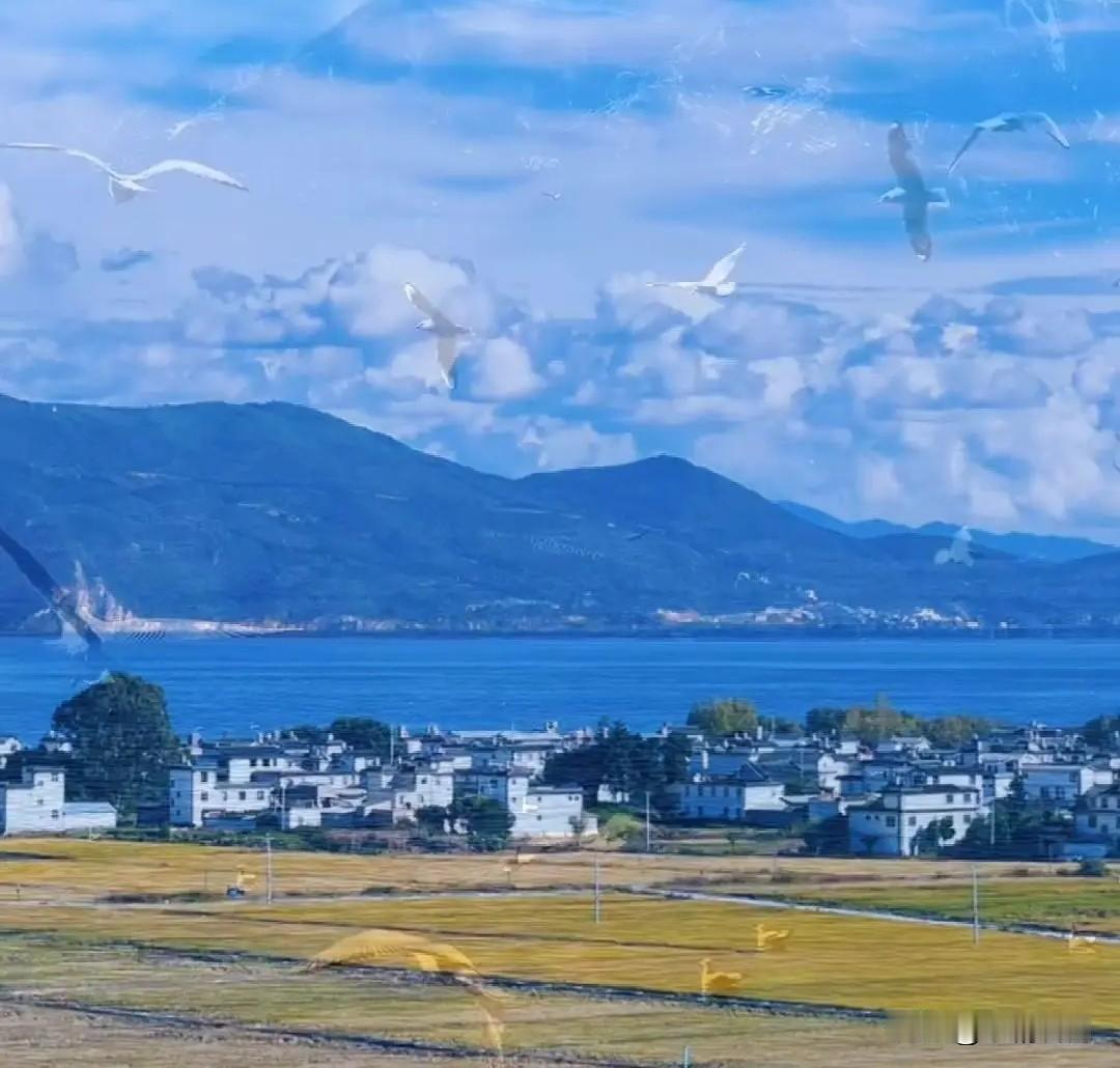 岸边的芦苇晃着,影子映在水里也跟着晃。偶尔有渔船划过,留下道浅浅的水痕,没一会儿