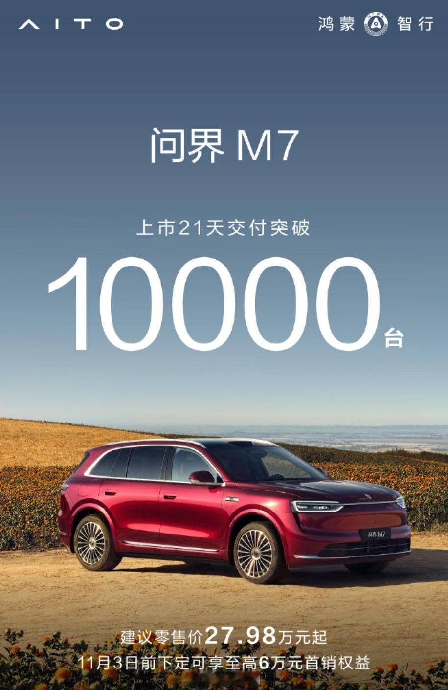 全新问界m7上市36天交付破2万新能源汽车