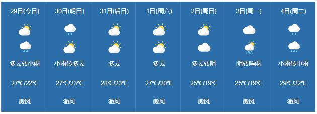 预计,10月29-31日受东到东南气流影响,雷州、徐闻有中雨、局部大雨,其余地区有分散阵雨。