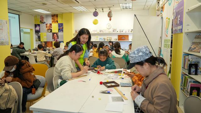 李静老师手把手指导亲子家庭学习盘扣制作。