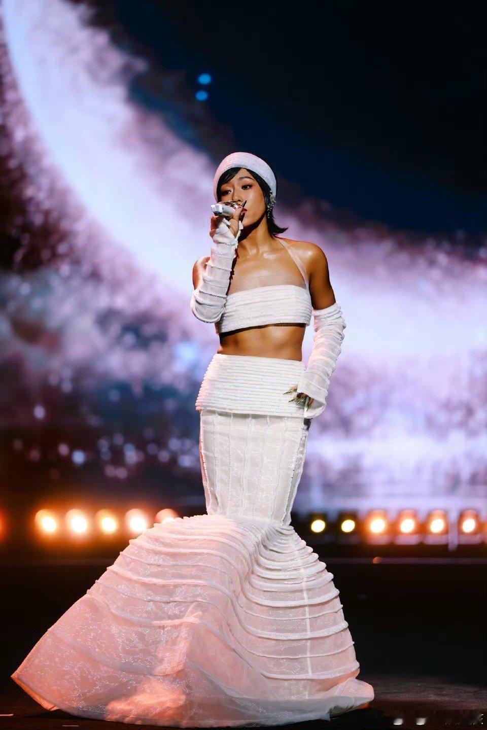 吉克隽逸月下珍珠 昨晚的舞台真的太有氛围感了,她站在灯光下,小麦肌闪着自然的光泽,就像一颗在夜色中发光的黑珍珠。她的嗓音独特而富有魅力,演唱时情感真挚,让人不自觉被带入到歌曲的意境中,无法自拔。