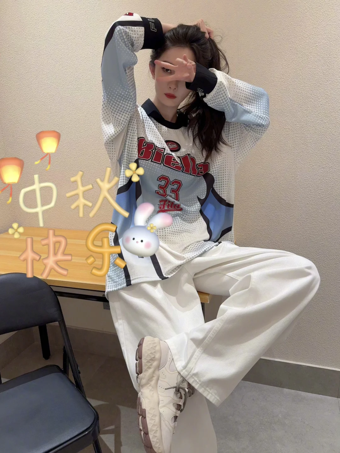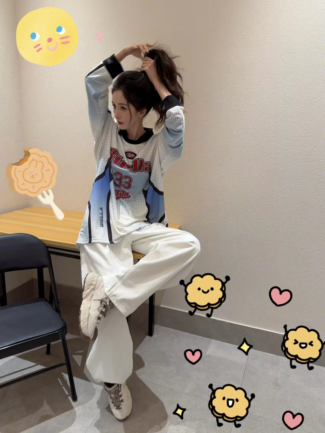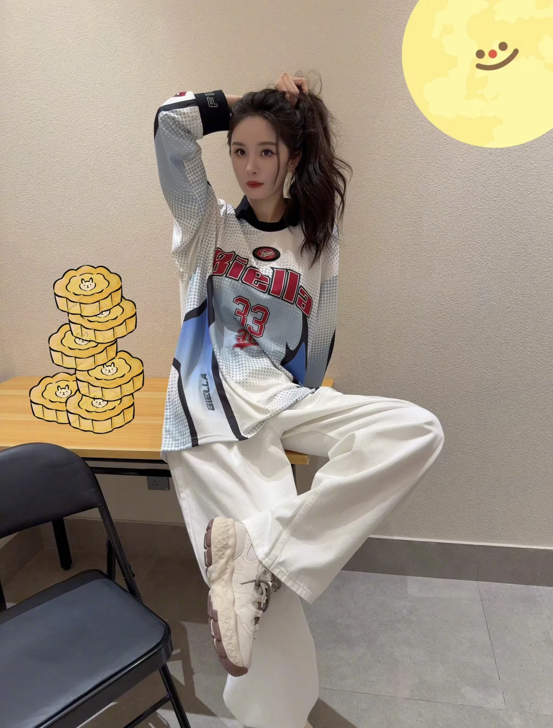 杨幂中秋随拍,polo长袖配老爹鞋,运动风look也太女大了! 图片cr:杨幂
