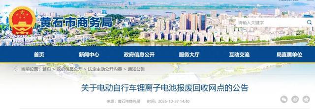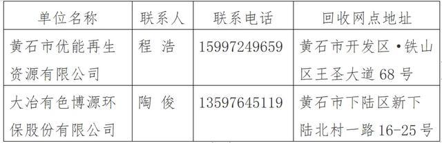 根据省、市电动自行车全链条安全整治工作部署,为有效防范化解电动自行车锂离子电池安全隐患,切实维护人民群众生命财产安全,进一步提升便民服务水平,现确定黄石市首批电动自行车锂离子电池回收网点2家。辖区内群众根据实际需求,就近选择服务网点。具体网点信息如下: