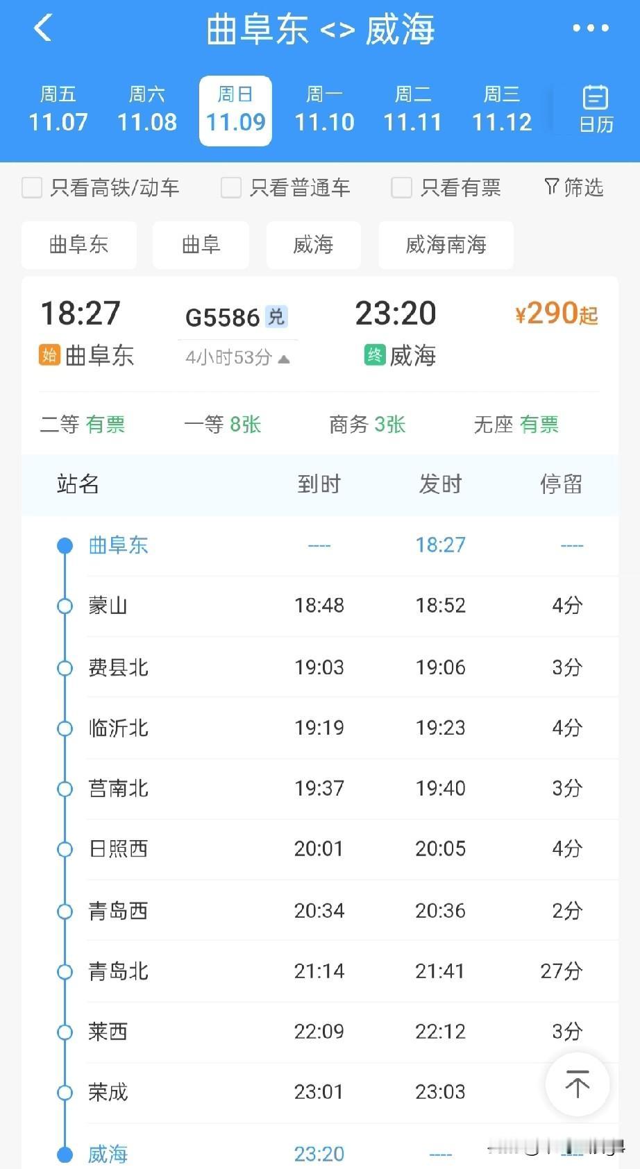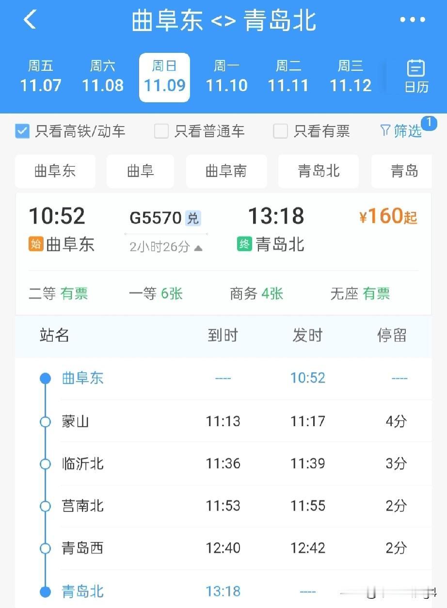曲阜东站有四趟始发列车,连接曲阜东站的第3条高铁济枣高铁2027年开通 曲阜东站,位于我国山东省济宁地区的曲阜市,曲阜也是我国文化的发祥地之一,2011年,京沪高铁在此设曲阜东站曲阜进入高铁时代,2019年曲阜东站日兰高铁日照至曲阜段站场投入使用,2021年曲阜东站日兰高铁曲阜至庄寨段通车。曲阜成为山东鲁南地区的重要高铁枢纽。 曲阜东站日到发列车超过150趟,京沪高铁北至济南,北京,南至南京,上海,日兰高铁东至临沂,日照,西至菏泽、郑州。2025年10月,济枣高铁新建车站也进入实质性建设阶段,预计2027年通车,从曲阜东站坐高铁,通过济枣高铁直达济南南部山区,泰安宁阳以及枣庄台儿庄等城市。 而目前曲阜东站开行的始发列车有四趟,随着日兰高铁车次开行以及济枣高铁开通,未来曲阜东站的列车还会进一步增长。最后我们来看一看这四趟列车分别开往哪里吧。 G6942和G5586两趟列车均由曲阜站开往威海站,而10月28号起去往威海方向,只能先途经荣成再到威海,是由于烟台南站暂时停运改造,预计2027年通车。 G5570曲阜东站至青岛北站,途经日兰高铁和青盐铁路,途经蒙山站,临沂北站,莒南北站,青岛西站。 G5530次高铁列车曲阜东站至临沂北站,36分钟一站直达中间不停靠任何车站。 济枣高铁