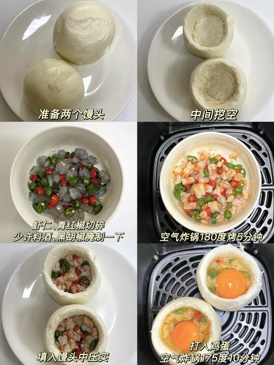 中国人有自己的汉堡!香辣馒头鸡蛋堡!! 馒头烤的脆脆的 加上嫩嫩的鸡蛋 一口下去还能吃到香辣的青椒 口感太丰富了!!巨巨巨好吃! 食材:馒头 虾仁 青红椒 鸡蛋 步骤如图⬆️赶紧去试试!