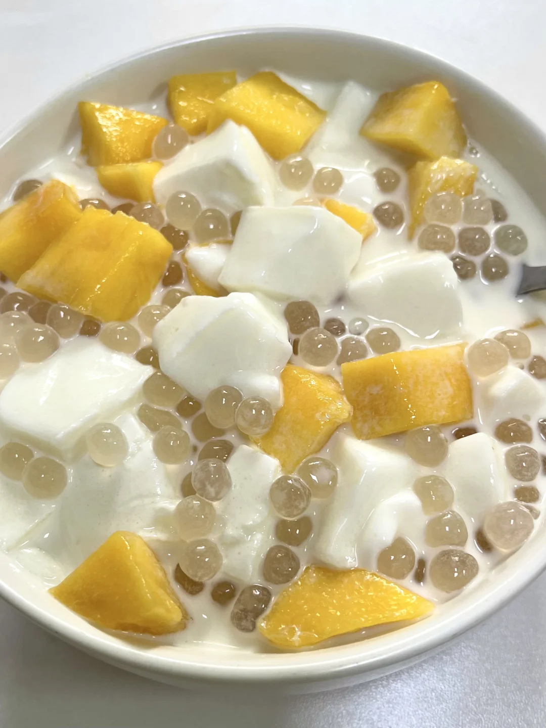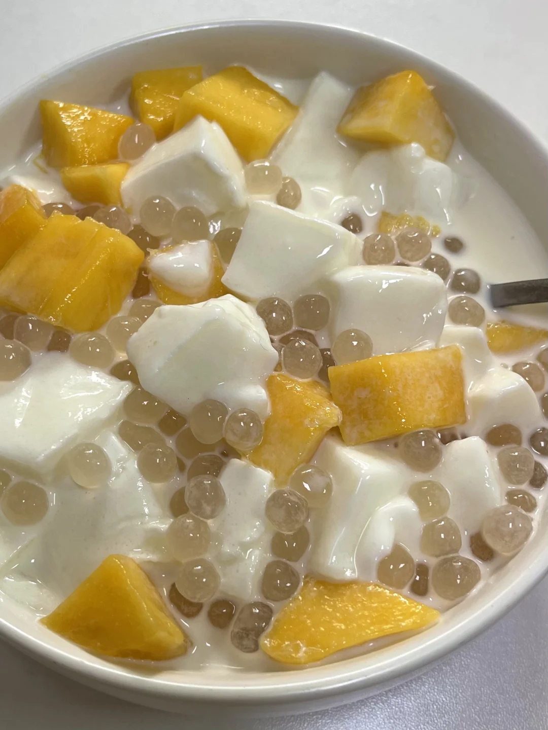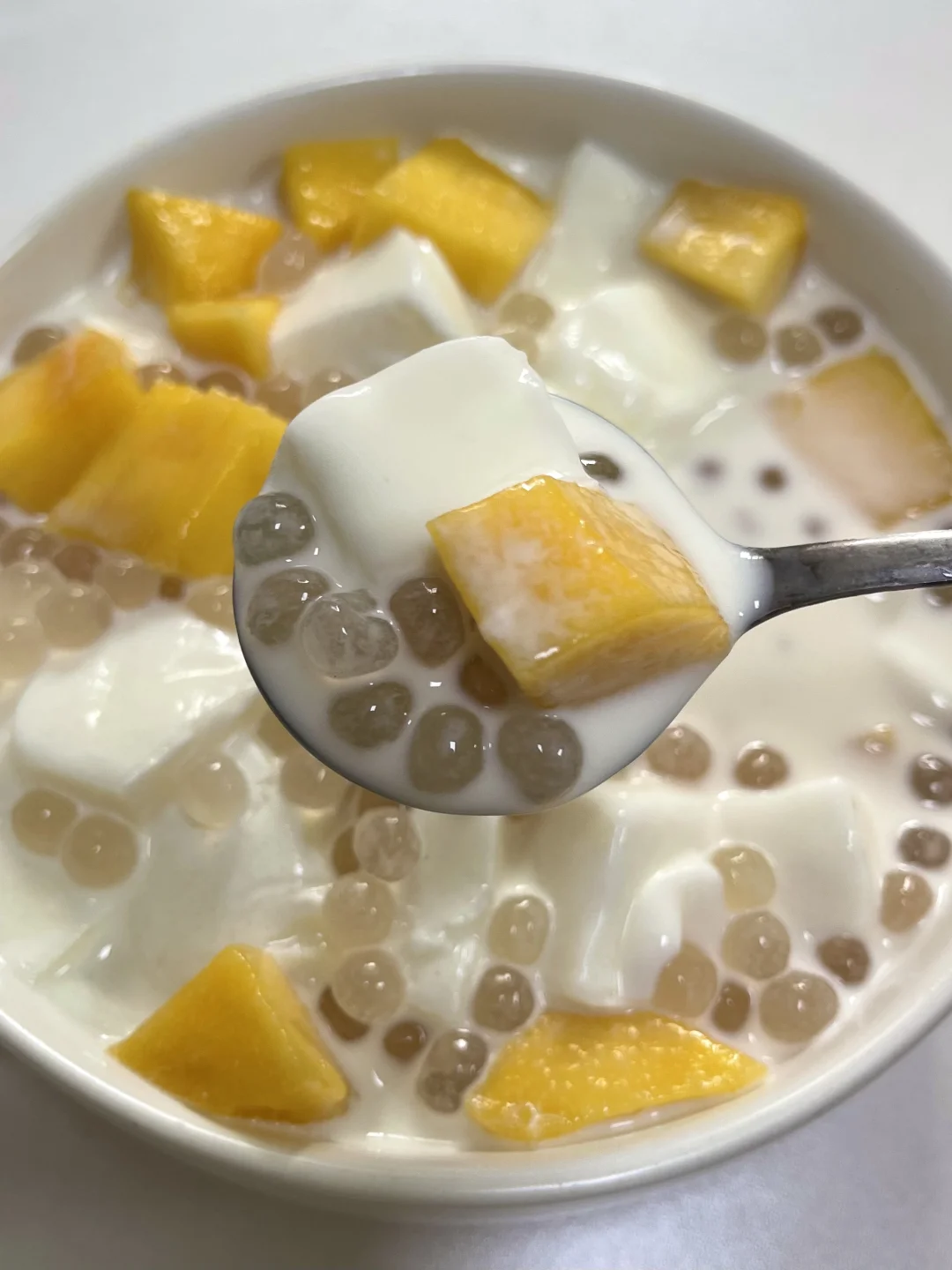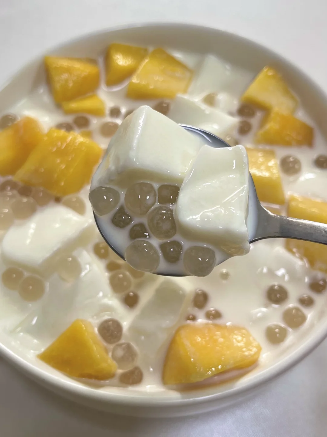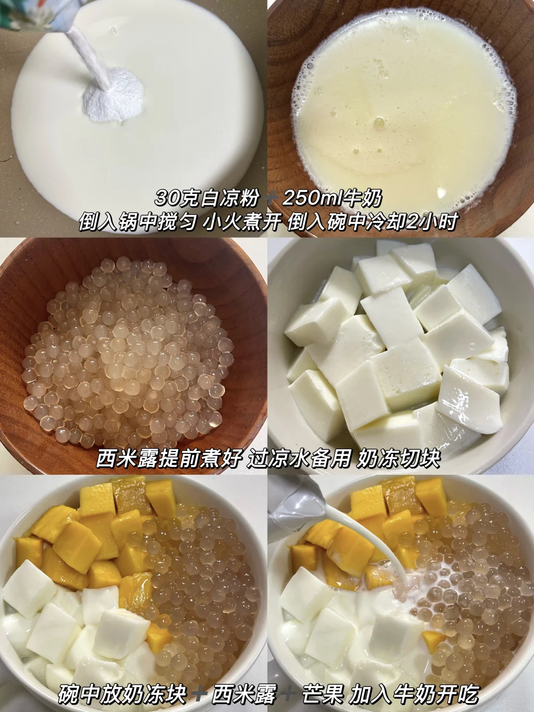 自制芒果奶冻西米露!! 奶冻入口嫩滑 西米Q弹有嚼劲 一口下去奶香浓郁~在家就可以实现甜品自由!! 放在冰箱里冷藏一下真的巨好吃! 食材:牛奶 白凉粉 西米露 芒果 做法如图⬆️简单又好吃 在家就可以实现甜品自由咯
