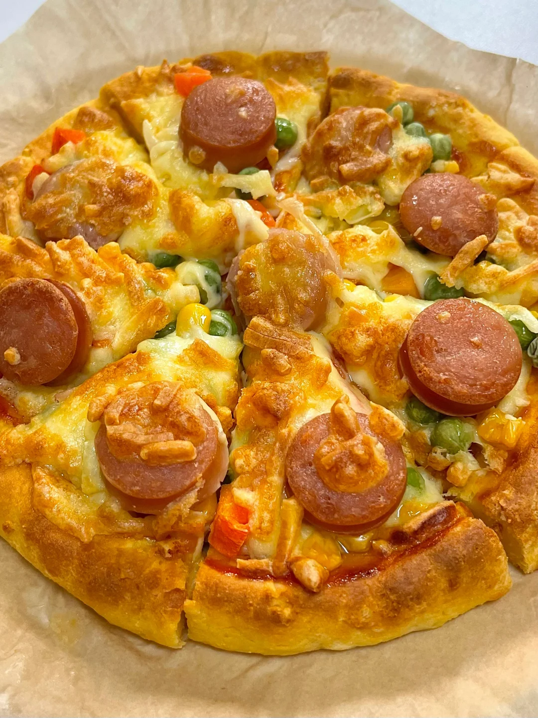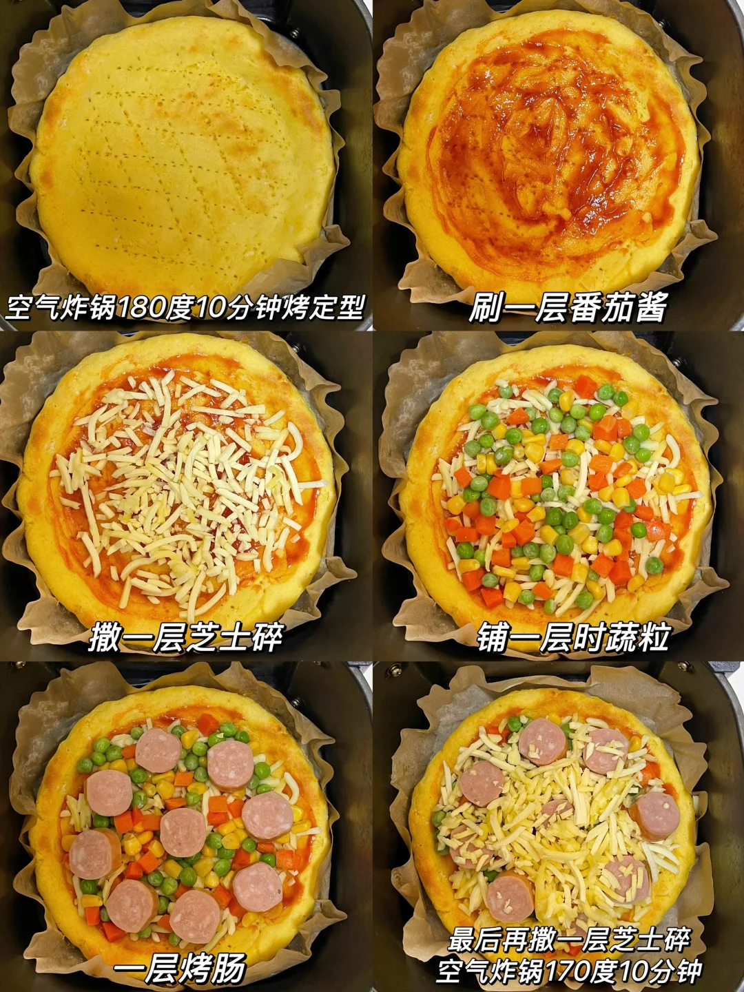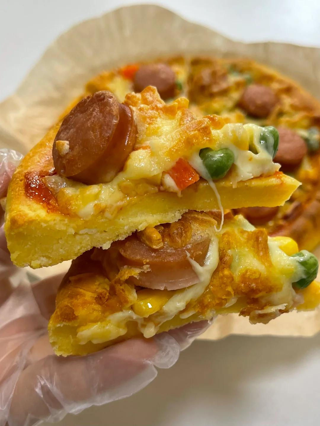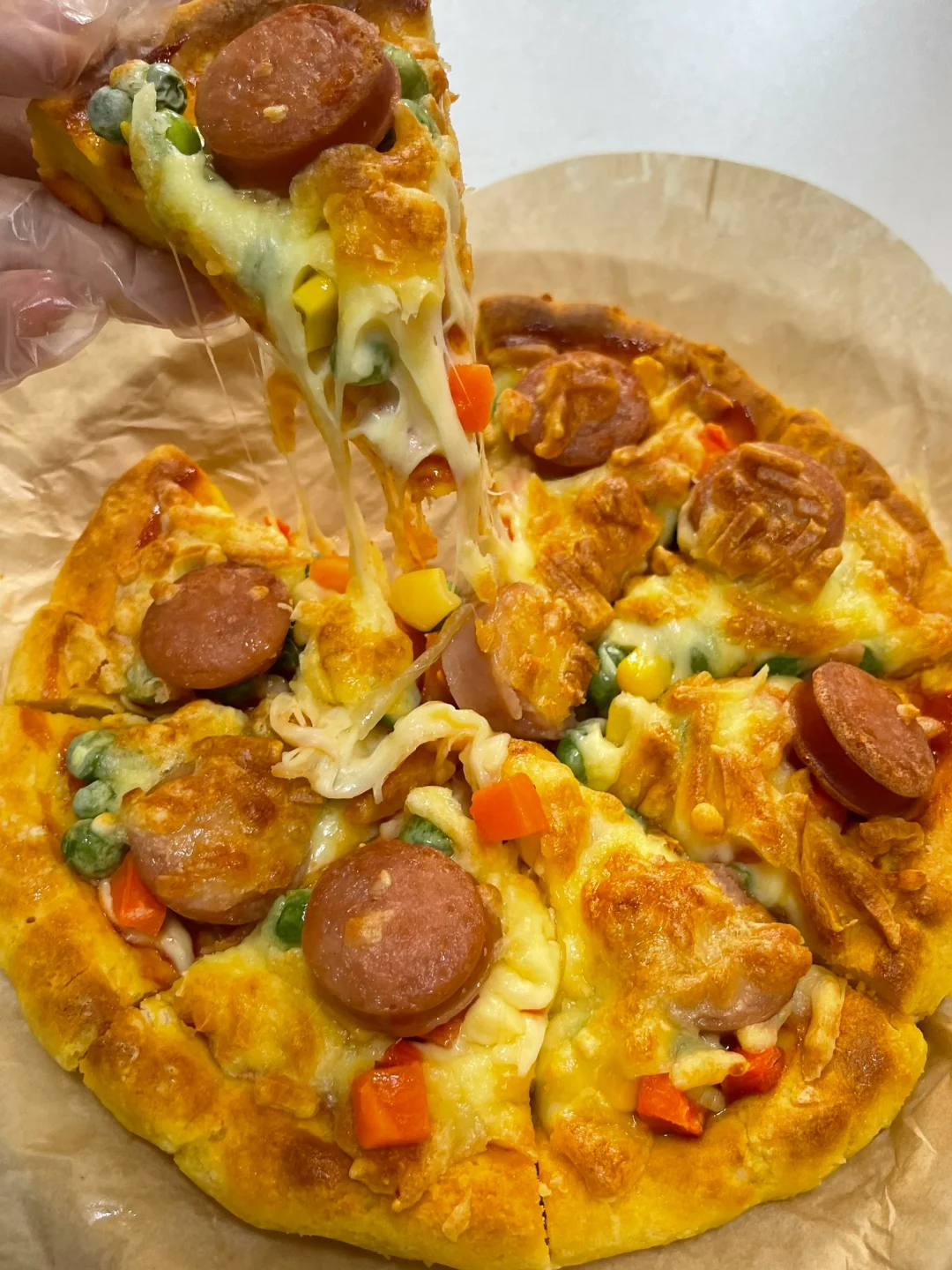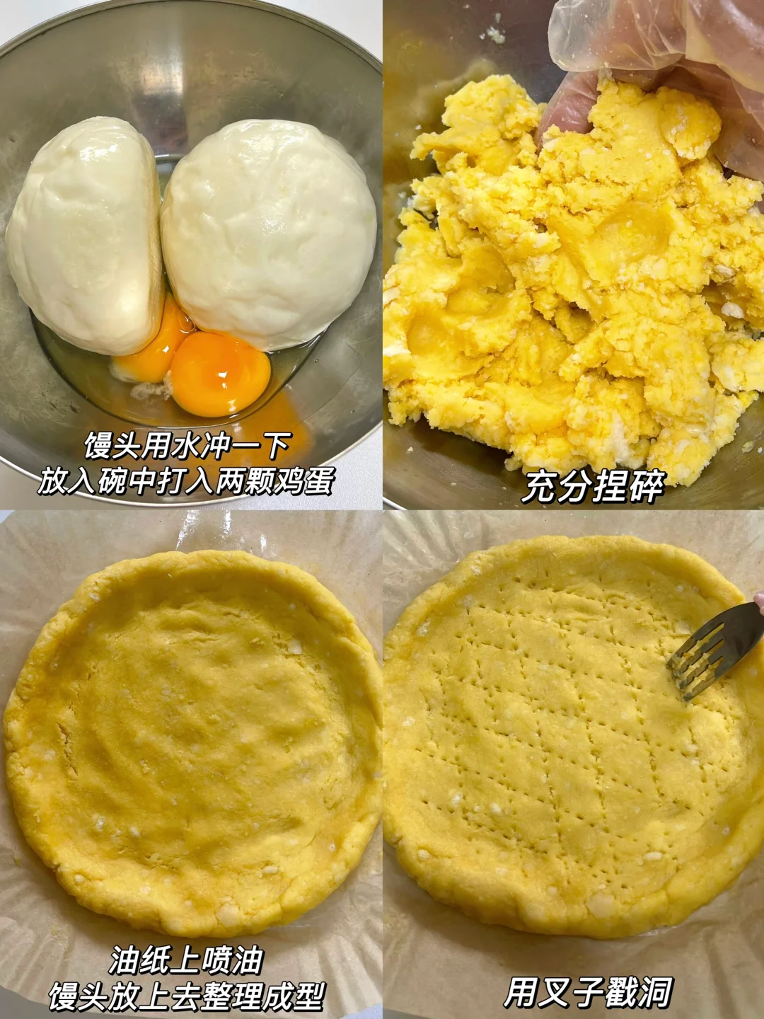馒头爆改披萨! 惊呆了!成品真的和披萨店卖的没什么区别 爱吃啥就放啥 嘎嘎香!做法巨简单 食材:两个馒头 2个鸡蛋 时蔬粒 烤肠 芝士碎 做法如图⬆️ ⚠️小小tips: 捏披萨饼底的时候记得手上抹点油 这样就不会沾手啦
