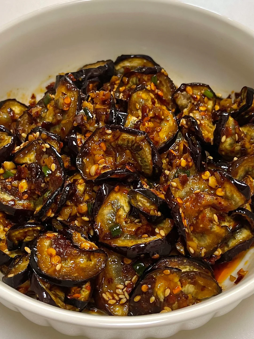 茄子这个做法简直!好吃哭了! 香辣下饭 鲜香开胃!做法巨简单 食材:蒜末 葱花 茄子 白芝麻 辣椒面 做法如图⬆️炫的停不下来!!超香!