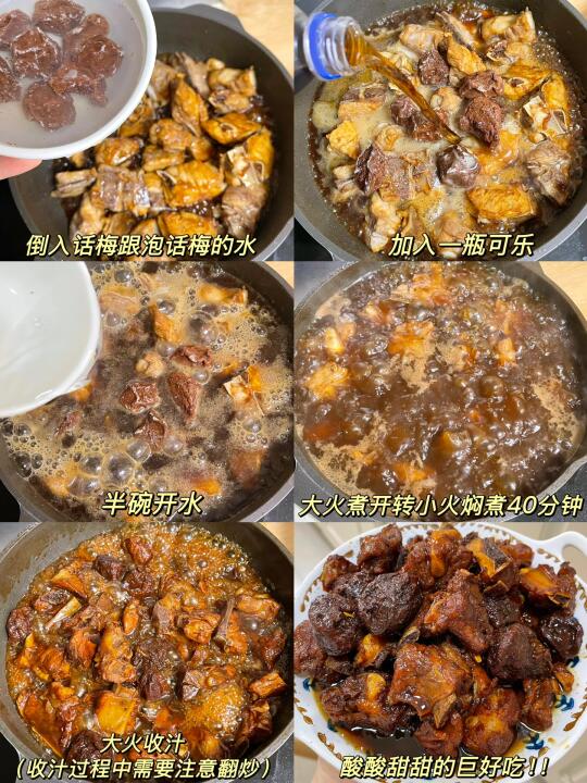 这个话梅可乐排骨真的好绝~ 酸酸甜甜的口感 一口惊艳!! 一上桌秒空盘!!真的hin开胃~ 求你们一定一定要试试!!! 教程如图⬆️ 超简单!!真的秒空盘~