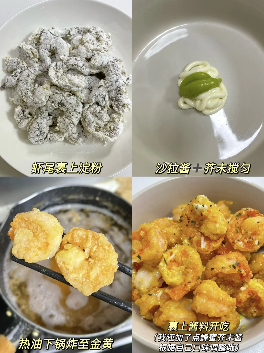 家庭版芥末虾球!! 香甜酥脆 巨巨巨好吃 肉质紧嫩 一口一个根本停不下来😭 食材:虾 鸡蛋 芥末蜂蜜酱(可以用沙拉酱➕芥末代替) 做法如图⬆️不好吃来打我[哭惹R][哭惹R]