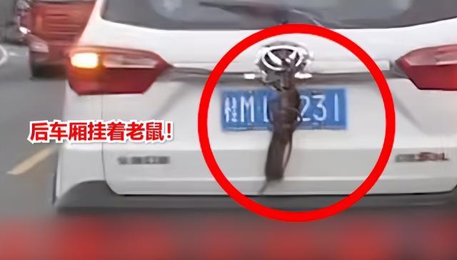 何某交代,他家里养了一只猫,平时喜欢抓老鼠玩耍。当天早上他抓到两只老鼠准备给猫当“口粮”。担心老鼠放在后备箱会咬坏皮革,便用绳子将老鼠绑在一起,悬挂在后窗雨刮器上,以为这样既能通风,又可防止老鼠乱窜。没想到老鼠一路挣扎,越吊越低,竟把车牌给挡住了。