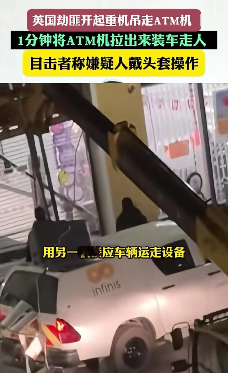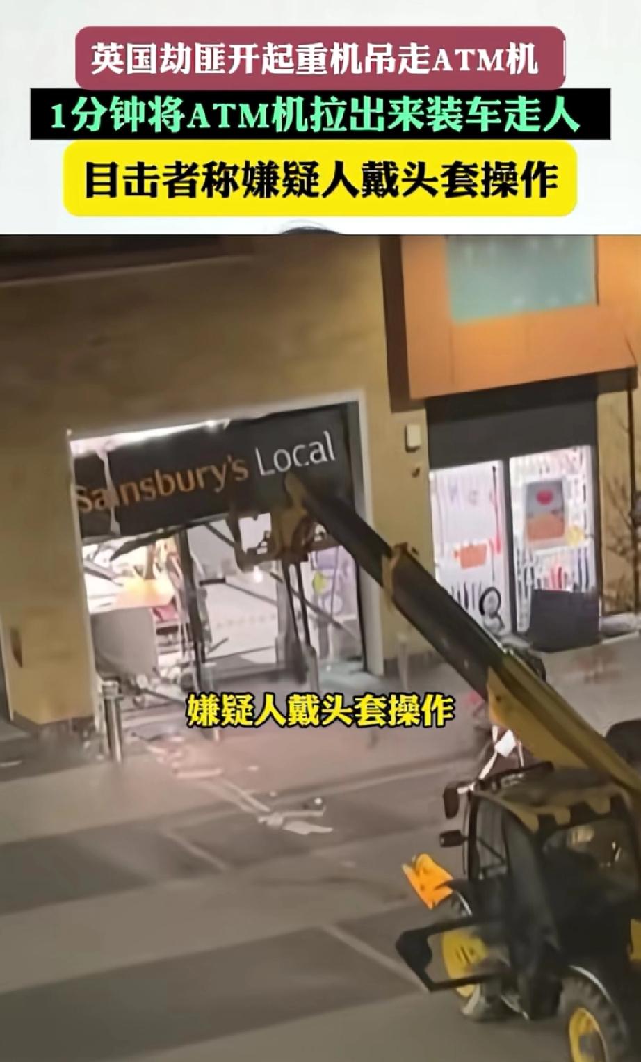 在英国,有人竟用起重机撞开超市大门,将ATM机吊起后放到一辆白色接应车上,随后白色车辆载着ATM机疾驰而去。 目击者称:“嫌疑人都戴着头套操作,整个过程也就几分钟。” 一台ATM机重量大约在500公斤到一吨之间。 如此沉重的物件,想要打开并非易事。 英国盗匪这般行径,着实让中国人吃惊,难道他们的街头没有遍布监控吗? 曾经发达的英国,如今是在逐渐倒退了吗?或许只剩那些欧式古老建筑还值得一观。 在我国,人们坚信勤劳致富的理念,没人会去做这种违法之事,因为一旦被抓,付出的代价太大,没人愿意为了有限的钱财而铤而走险。 难怪有出国旅游经历的人说:“在国外旅游,一定要保护好自己的钱包,随时都可能被偷。” 富庶之地多安宁,贫瘠之处多纷扰。盗匪横行从非天性本恶,而是贫穷困住了生路,也磨碎了敬畏。 忽然感觉特别幸福,因为在其他国家人的眼里,中国是最安全的国家之一。 来源:小强热线浙江教科