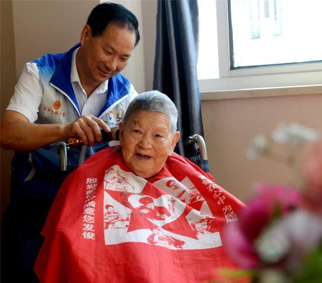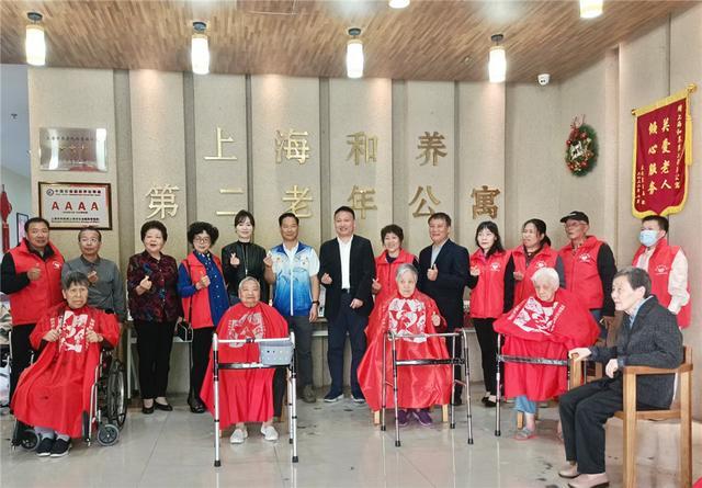 在第十六个全国敬老节来临之际,全国劳动模范殷仁俊率大爱无疆志愿者服务团队,前往上海和养第二老年公寓为老人提供免费理发服务。