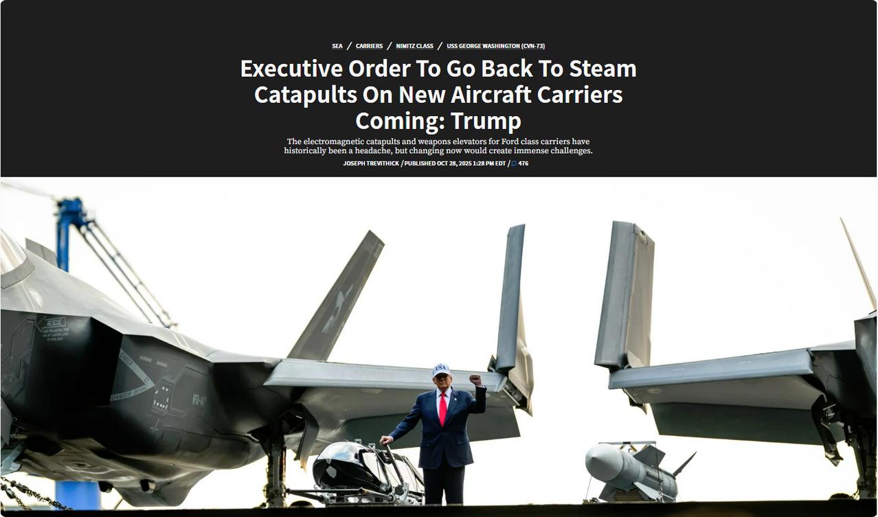 老特签下行政令,强制要求美国海军放弃开发多年的电磁弹射、新航母也改回传统蒸汽路线。 “他们花了9亿美元想搞出电磁弹射器。而目前他们用的是蒸汽弹射器,效果非常好,已经用了50年了,对吧?所以我们要留在蒸汽弹射器时代。说真的,伙计们,我想做出改变。” ——老特甚至在驻日基地内说出自己的想法。 似乎有人告诉他,蒸汽弹射维护很简单,用喷灯和锤子就能修——电磁弹射则需要请麻省理工的专家们到舰上想办法。 “有人搞出了电磁弹射,但是我们不跟”——那9亿没就没了,当沉没成本吧! 有老特在美国坐镇,真是天助我也。
