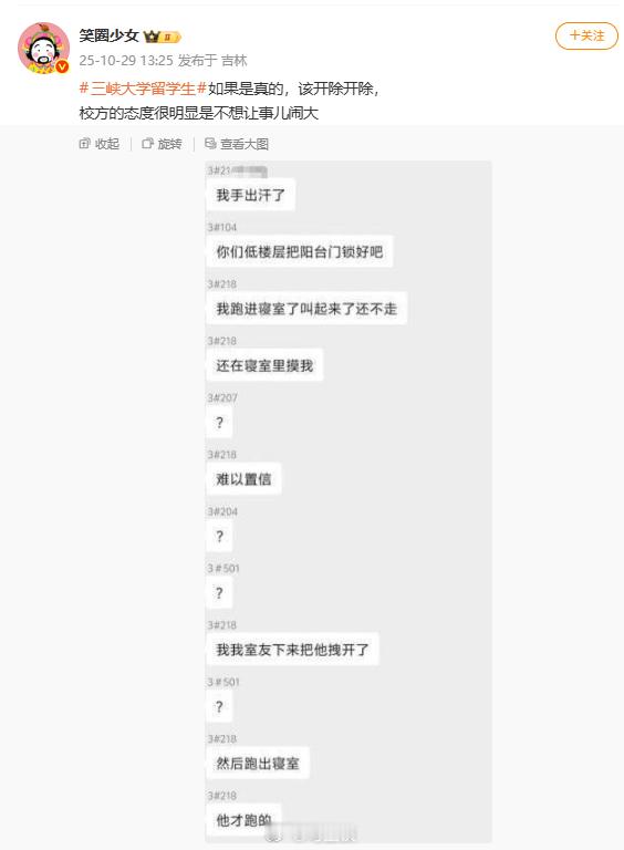 三峡大学官微关闭评论 留学生深夜徒手爬楼闯入女寝 热点观点
