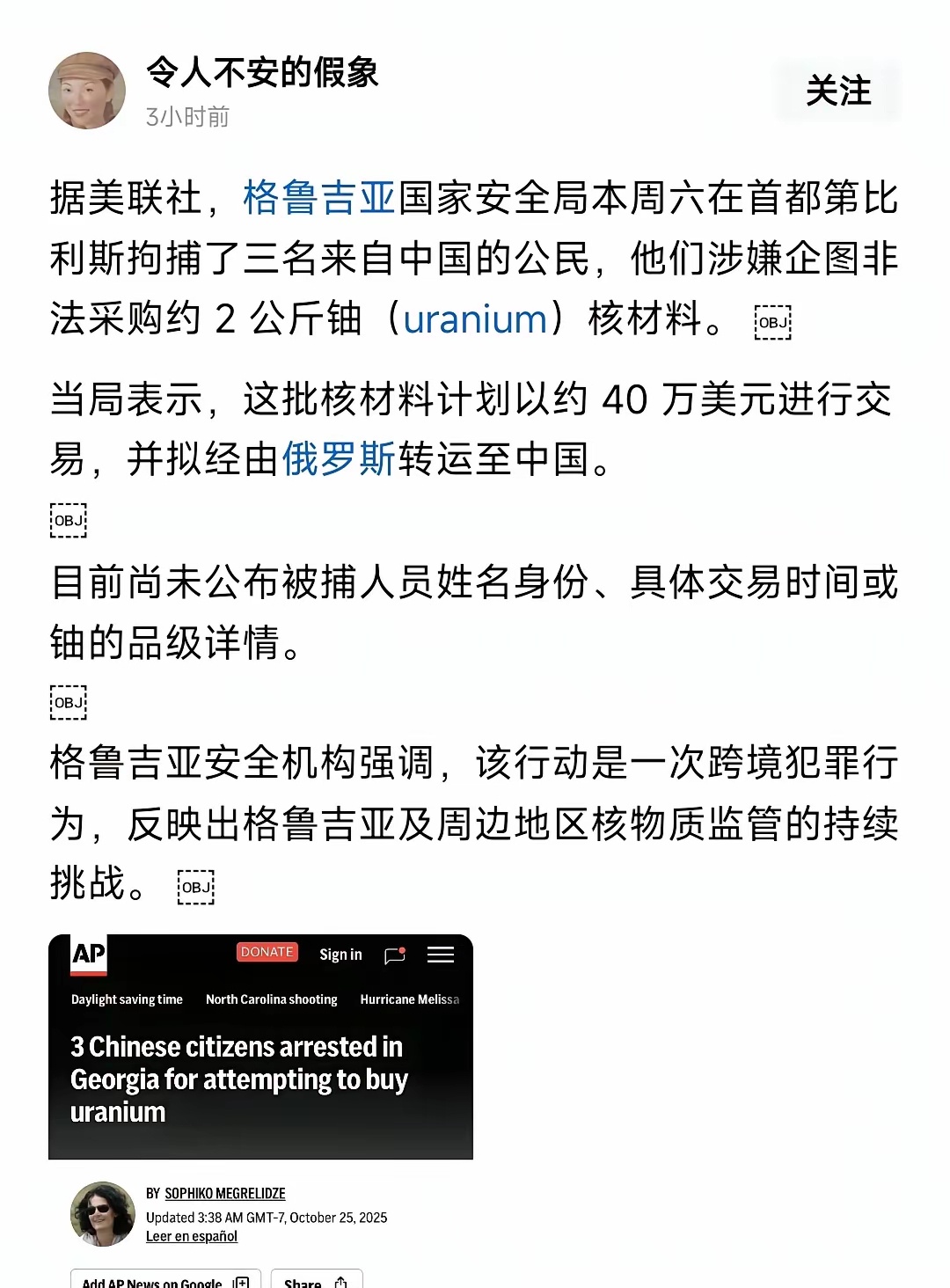从东南亚搞电诈,到巴黎偷金块,到美洲卖芬太尼,再到南加索倒卖核材料,部分国人果然精明,业务是越做越广,生意是越做越大了。