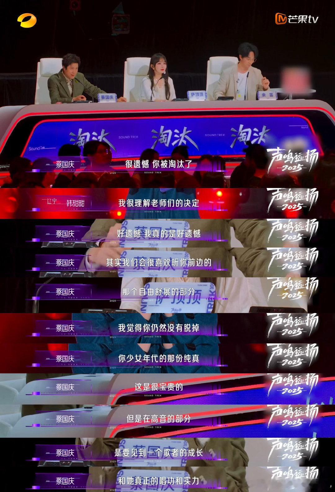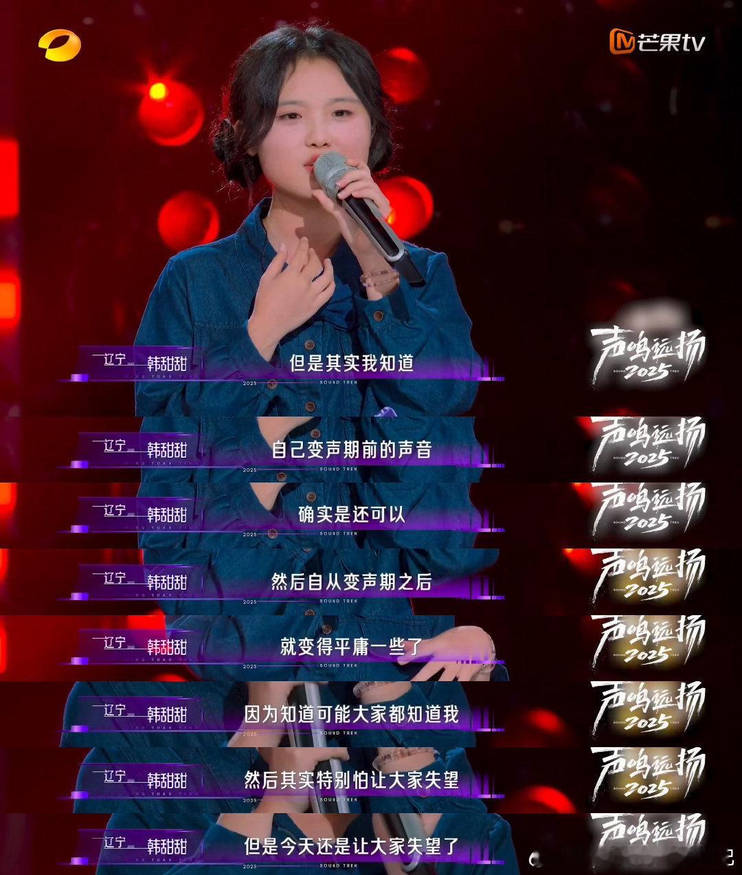 和刘宇宁合唱的童星惨遭淘汰声鸣远扬 还记得和刘宇宁合唱《飞云之下》的韩甜甜吗?她来到《声鸣远扬》赛场演唱《天下无双》。变声期后的她没适应新嗓音,高音破音,被评审淘汰。她泪洒现场,称知道声音不如以前。评审鼓励她明年再战,期待她未来能在音乐舞台上大放异彩!刘宇宁[超话]