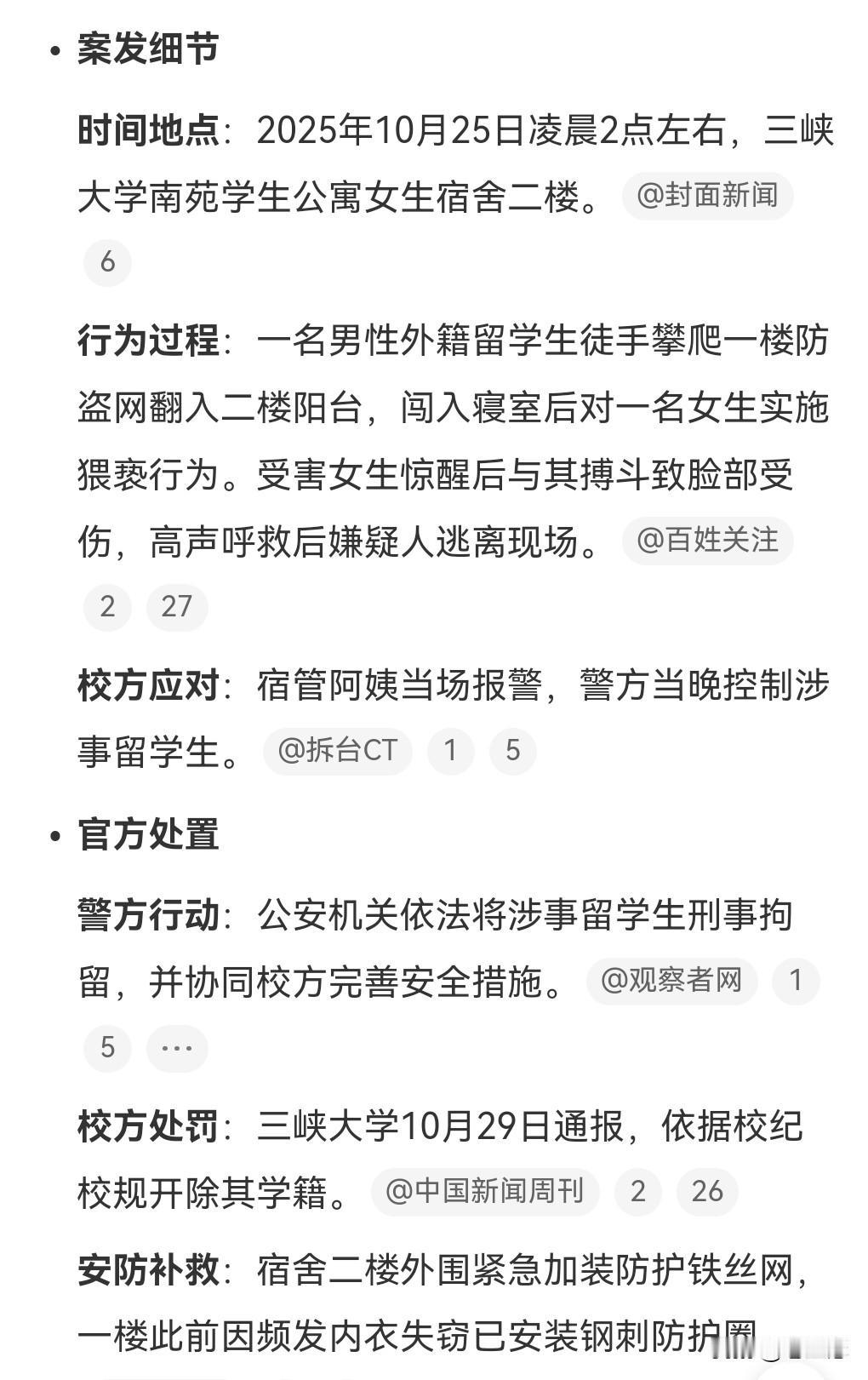 妙啊妙啊,这个处理这是相当的到位啊,被开除了。 近日一个黑人留学生竟然役闯女生宿舍试图猥亵女生。 10月29日报道,警方回应留学生深夜擅闯女寝,这名学生被刑事拘留,而且学校已经开除了他的学籍。 这真的是大快人心啊。 这也敲响了警钟啊。 奉劝学生们不要做出这种行为。
