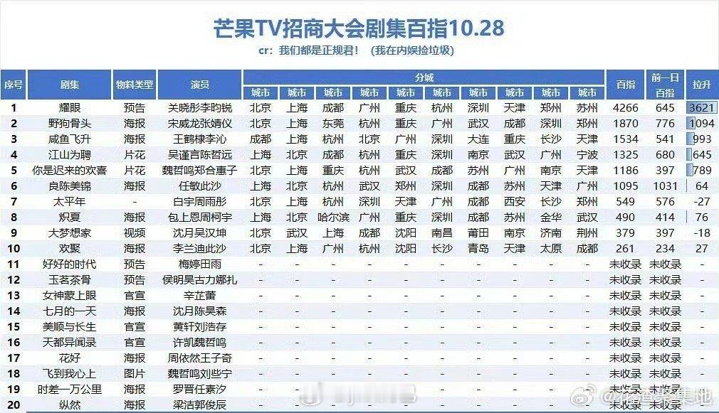 看出来耀眼昨天的预告很不错了 ,每一项竟然都是第一