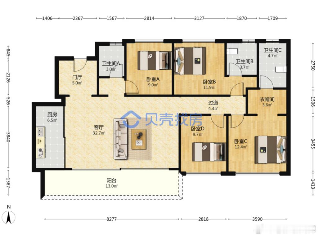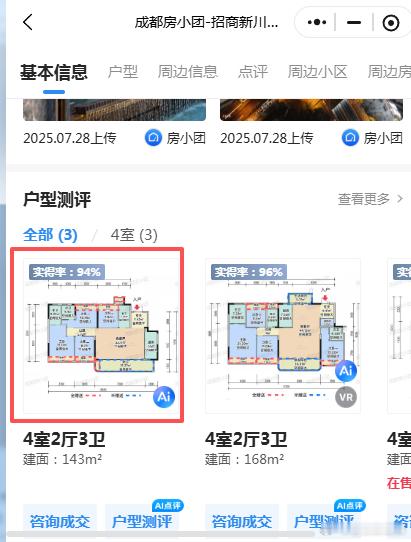 二手市场的滞后性: 截至目前,二手市场上完全没有得房率能达到100%的“新规产品”。即便是当初号称得房率95%的新川招商臻境,经测算(贝壳套内实得119.5㎡ + 入户光厅5㎡ = 124.5㎡),其实际得房率约为87%。