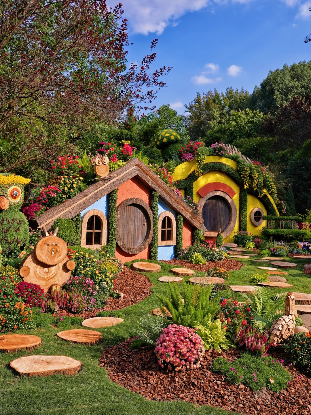 今年的菊花展依旧有很多亮点,不仅融入了国潮美学,还结合了动画童话元素,布景创意十足,主会场一步一景,非常值得来打卡!📸