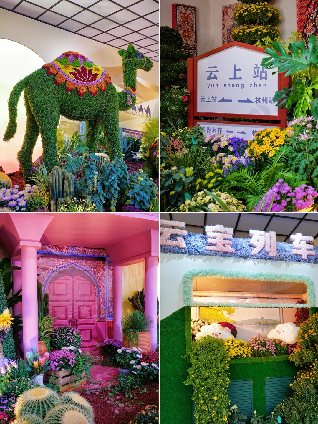 ✅鱼乐园:精品盆栽菊花,大部分还未开;还有诗意临平、杭城隧道、云宝列车等造型布景。