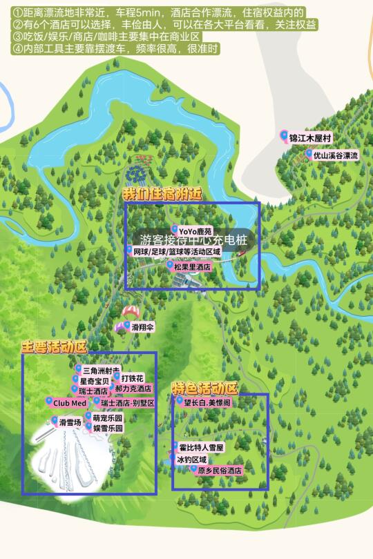 4天的长白山亲子游结束啦 这次是和闺蜜1V1遛娃 漂流、滑雪、看雪景、望长白山 一直在万达和华美胜地之间纠结 都说华美胜地更适合亲子游 就是 ta 啦!一站式安排好的那种 体验真的不错,给最近去长白山的盆友一些思路 . ⏹说在前面 1⃣关于温度:长白山虽零下10几度,但白天其实不冷,清晨漂流冷,建议叠穿大法; 2⃣关于交通:飞机合适且有免费接送机。如果到长白山高铁站可以预约直通车,单程8零元每人; 3⃣关于酒店:地理位置、配套服务、价格,丰俭由人,我们选的松果里。因为权益里面我们想去的雾凇漂流、儿童乐园、萌宠乐园、滑雪、娱雪都有! 4⃣关于华美胜地:图②地图,很大,酒店选择多,内部业态丰富,玩起来很方便! . 🆒行程安排 D1:抵达长白山,直奔娱雪体验撒欢,晚上冰与火之歌EP夜游主题,雪夜打铁花、喊山火把夜行、龙灯巡游! D2:WILD WORLD 滑雪场滑雪体验,下来可以继续娱雪乐园/也可以去看萌宠,有企鹅、驯鹿、狍子等动物,晚上去喜鹊树餐厅来顿自助火锅,然后星奇宝贝超大室内儿童乐园放电! D3:清晨冬日漂流,半天时间度假区闲逛:打卡拥有网红泡池且能看到长白山的美憬阁酒店、原乡民俗酒店、冰川冬钓、小瑞士蓝调时刻雪景……晚上霍比特人冰屋雪地火锅,还可以欣赏二人转表演! D4:WILD WORLD 滑雪场继续滑雪体验后返程 P.S.想去天池且天池开放需要一天时间,西坡坐雪摩托上去,因为冷且队友没在,我们没去。 . 🔀长白山旅行小Tips 1.墨镜必备,雪地反光强; 2.漂流穿一次性雨衣,确实溅水且会结冰; 3.没有太阳的时候确实冷,叠穿大法! 4.戴防水且能触屏的手套,暖宝宝按需; . Ⓜ️我为啥选择这里呢? 1⃣住宿权益:1V1的遛娃,其实就想无脑玩,WILD WORLD·滑雪场、森林娱雪嘉年华、漂流、各种雪地项目、室内乐园……全了 2⃣本身很美:超美! 瑞士风格的瑞士jiu店;远眺长白山的望·长白美憬阁;回望东北旧时光原乡风格民俗酒店,随手一拍就是雪景大片。 3⃣滑雪体验:滑雪是刚需,幼崽属于初级水平,这里更加合适! 4⃣幼崽友好:除滑雪和漂流,有很多幼崽玩的地方。萌宠乐园的小动物、娱雪乐园的雪圈/冰场/UTV,每天都可以去的室内乐园,可以买买的商业街…足够!