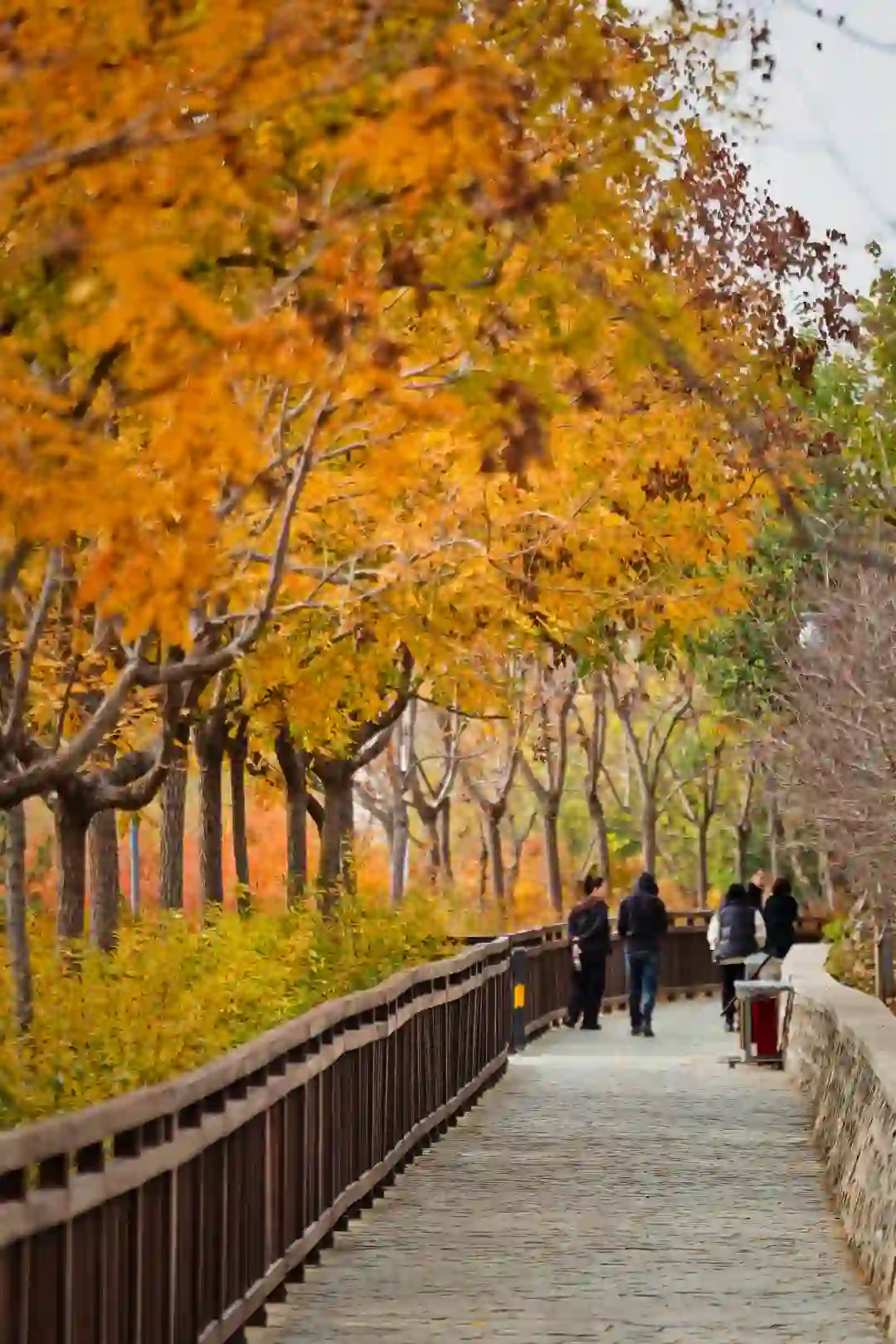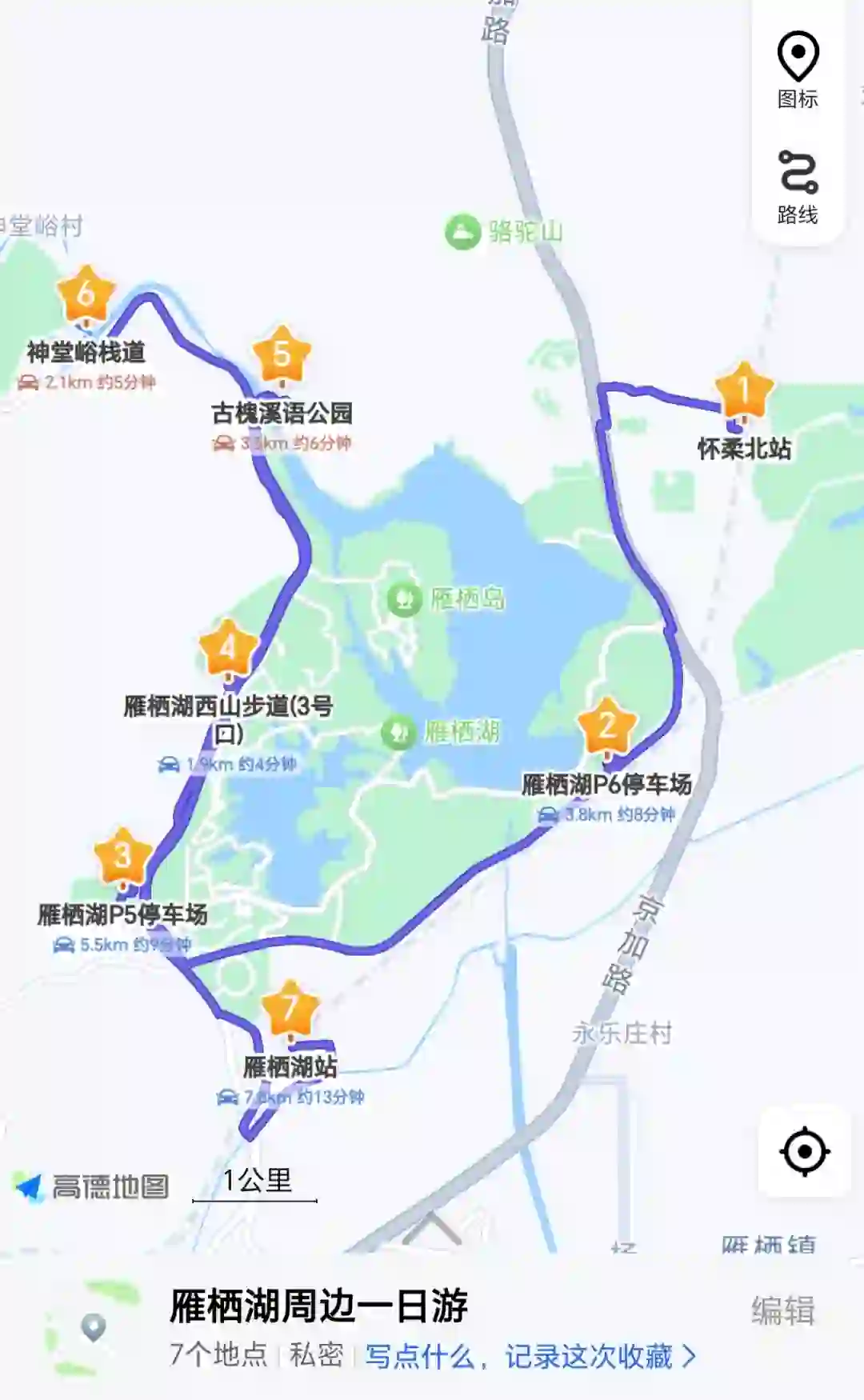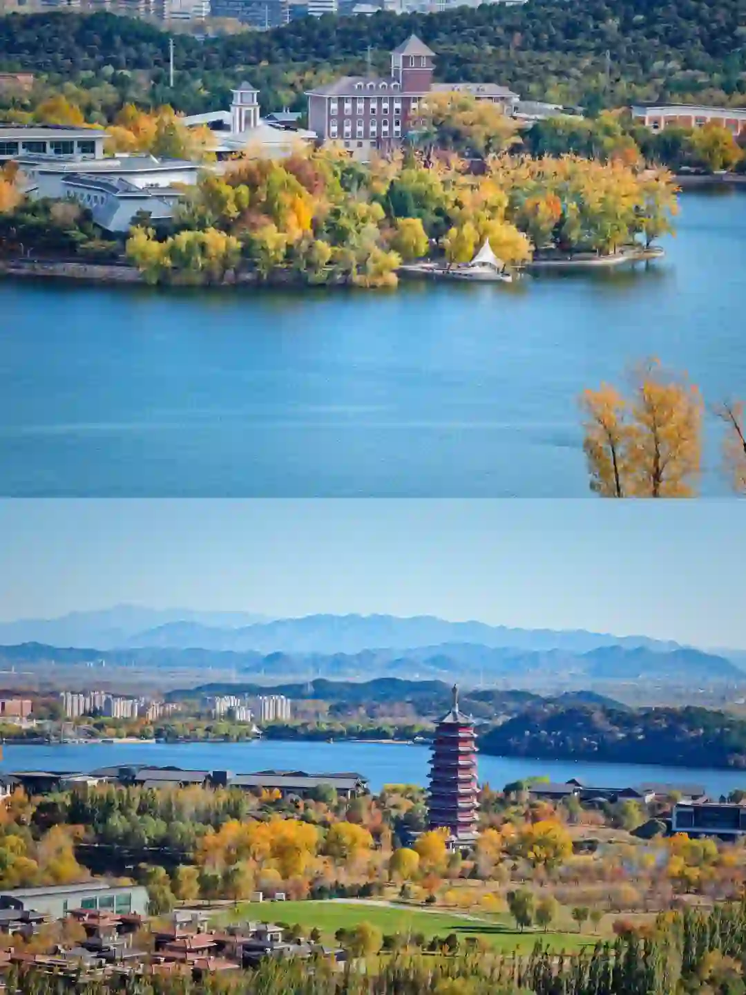 今日图文很养眼!建议看完 前面一片蓝绿,后面一片红黄 就说这样的周六日多完美吧! 据说本周日(17日)最后一天开放 天气放晴了雁栖湖真的很美 车次都查好了值得盆友们立马冲 . ⏺火车建议 根据自己住的地方呀! ①北京北-雁栖湖,适合北边盆友,明日有票!比如S515 ②通州西-雁栖湖,适合西边朋友,明日有票!比如S611 . ⏺整体路线 ①北京北-雁西湖火车站,出站右手侧上台阶去打车,近! ②打车去西山步道3号入口 ③徒步栈道赏秋去P5号停车场(1/2号口) ④找个共享单车先东骑行到P6停车场 ⑤共享单车骑/走回雁西湖火车站返京 ⑥雁栖湖湖滨公园也可以了解一下(收fei) ⑦还可以去神堂峪、怀山柔水,主打一个都不花钱 . 1⃣西山步道 3号口进入,步行到P5号停车场(1-2号入口),大概用时50min,这段路基本上属于走平路!但是风景真的很美。这样走的好处是大概5min就可以到达最美观景台“聆雁回鸣”,然后一路缓坡往回走取车。“环翠会芳”也推荐,平台的位置拍出了一条好像通向大海的栈道! . 2⃣雁西湖骑行 可以找共享单车,也可以租新行车,建议直接东去大坝的方向,这边会有不同的风景体验,一直骑行到7号口,还车打车去红螺寺。 . 3⃣湖滨公园 就是步栈道上看到的大片绿色的地方,是一个高尔夫球场,下午3点以后可以对的在开放,按照人头收🎫,景色很美,价格不菲! . 💟其他说的 如果想共享单车骑行,也可以去程到怀柔北,骑行到西山步道3号口,那边小蓝车多!环湖骑行风景也美,大概骑行45分钟。然后走西山步道从1号口出,步行去雁栖湖车站,可以全程不打车了!