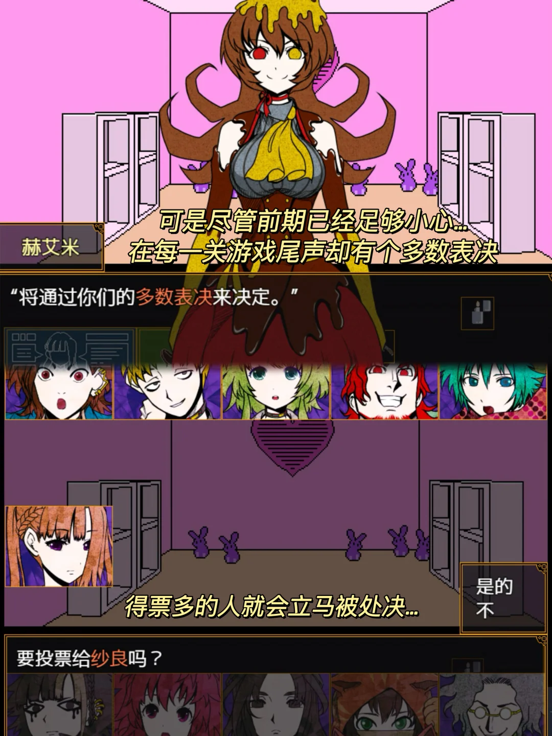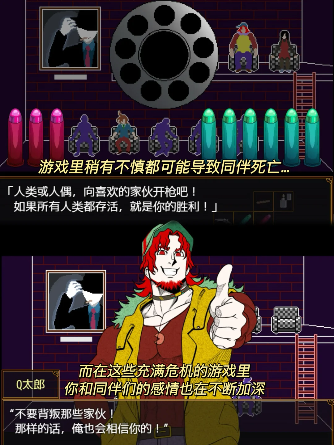 游戏名:《キミガシネ》 平台: Steam 游戏简介🎮: - 多数表决,选中者即被处决 这是由11个参加者组成的死亡游戏 和其它参与者一起改变这凄惨的结局吧… 游戏评价📝: - 一款总算有中文🍮的游戏,游戏虽然画风复古,但是不论是剧情还是文本都非常优秀,很有代入感,每个角色都智商在线,为了守护自己想守护的而从容赴死真的很好哭!而且游戏还有多个结局,真的入股不亏~