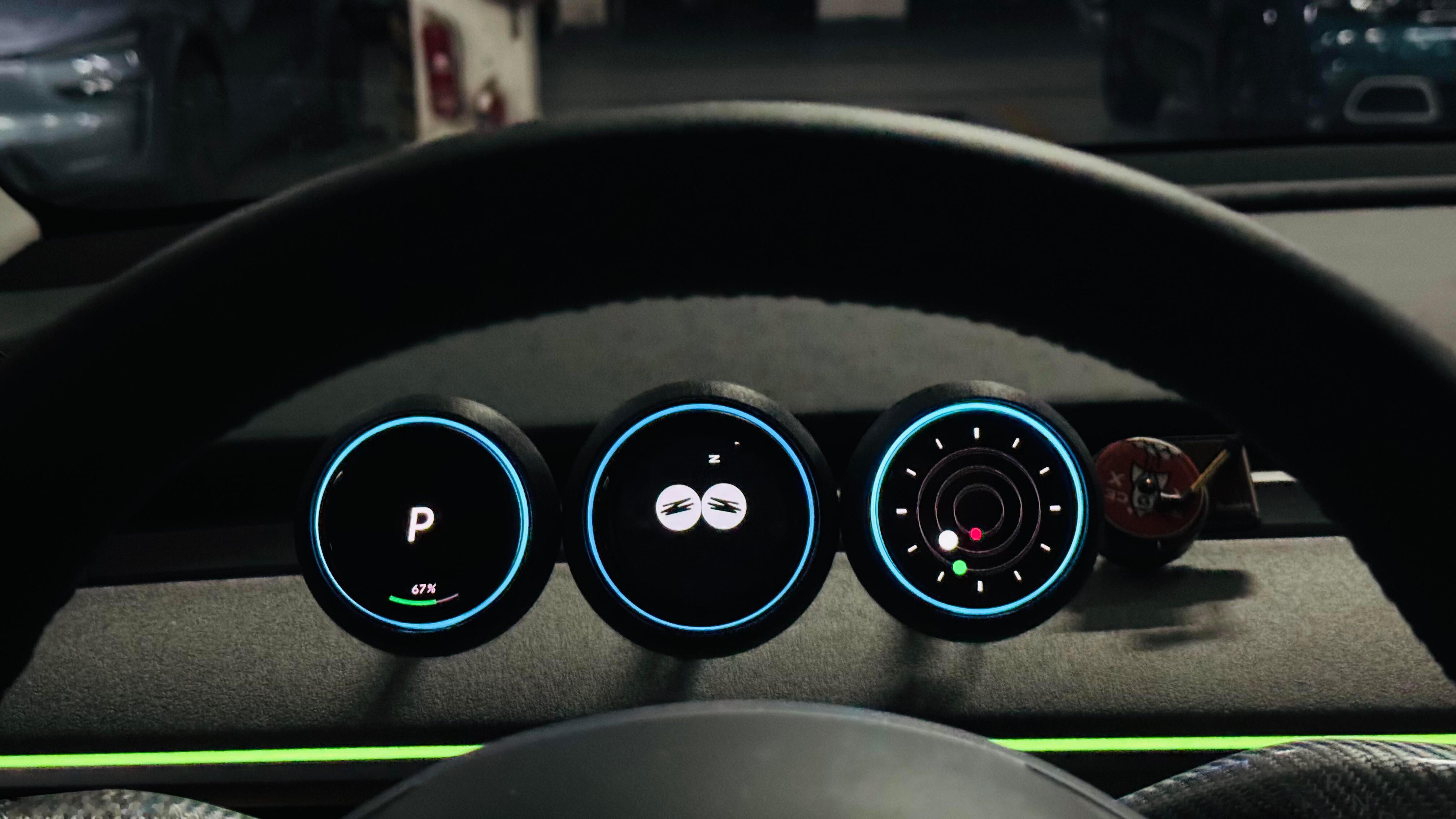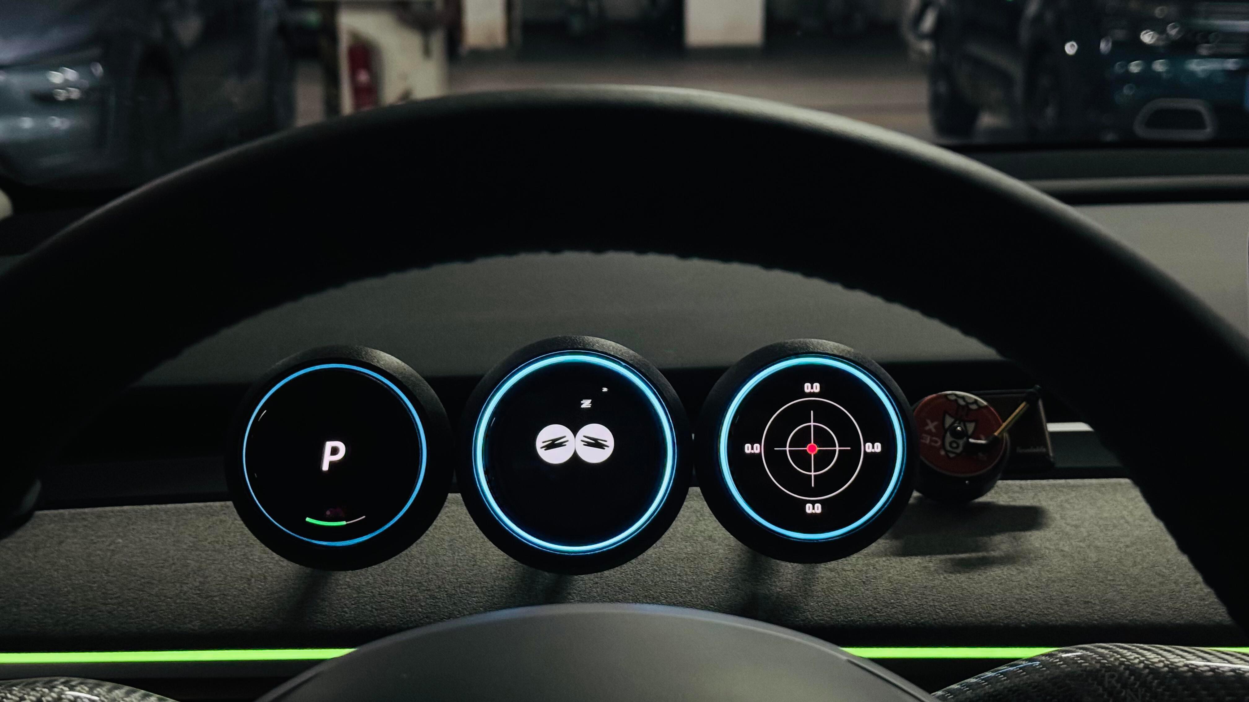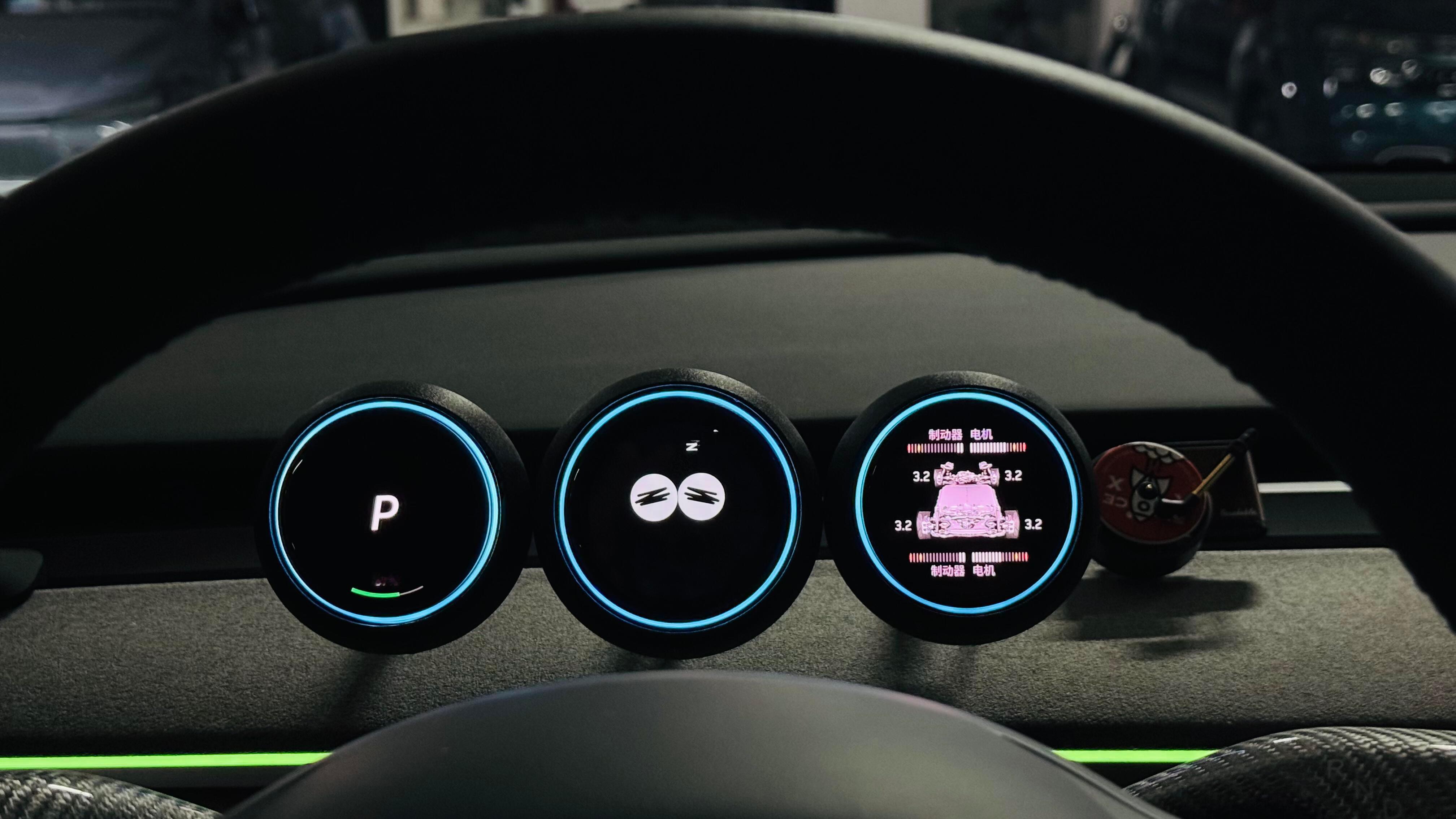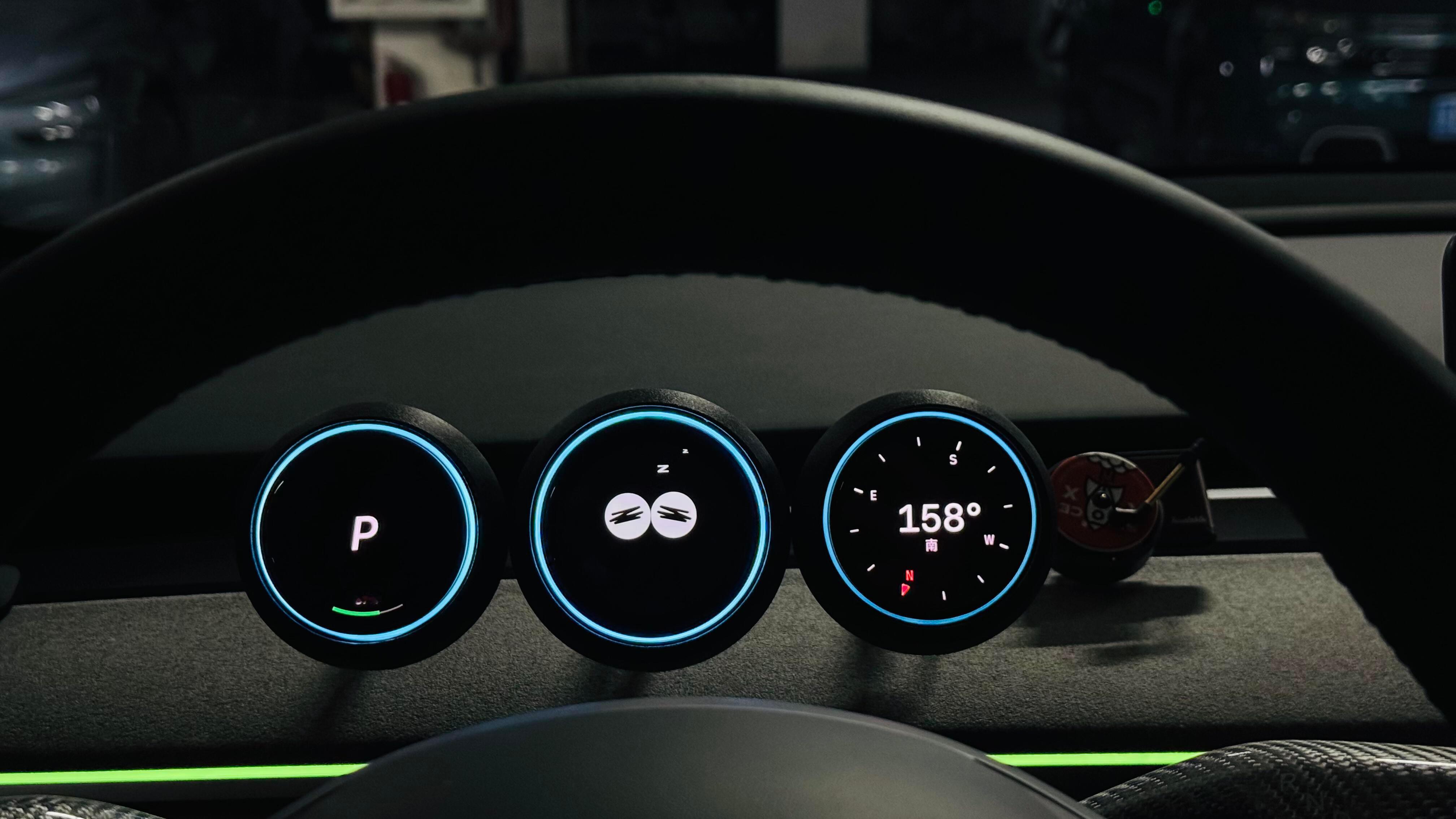 特斯拉最强副屏出现了集时速,表情,指南针,音乐流,G值,胎压等丰富内容体现的固件