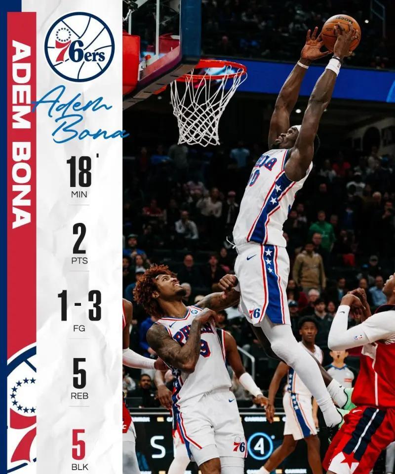 艾弗森预言本赛季的MVP将是马克西,而总冠军将属于76人!虽然赛季才刚开始,一切还为时尚早,但是球队的未来核心阵容框架已经构建,只等再细致打磨就能大发神威! 76人开赛以来4战全胜,暂列东部第一!后场双枪马克西和埃奇库姆功不可没,两人联手场均拿下59.8分,其中马克西场均贡献37.5分3.8篮板8.3助攻1抢断0.8盖帽,投篮命中率45.5%、三分命中率47.7%、罚球命中率87%;埃奇库姆场均贡献22.3分5.8篮板5.5助攻1.5抢断0.5盖帽,投篮命中率47.1%、三分命中率42.9%、罚球命中率78.6%! 相较于越发疲软的恩比德,后场双枪显然才是球队的未来!开赛以来,伤愈归来的恩比德场均贡献16.3分5篮板3.7助攻0.7抢断0.7盖帽,投篮命中率45.9%、三分命中率37.5%、罚球命中率69.2%,数据看似还不错,但对于球队的胜利只能说是锦上添花,而更适配球队后场双枪的则是二年级22岁的小将博纳! 博纳在2024年NBA选秀次轮总第41顺位被费城76人队选中,司职大前锋/中锋,身高208cm,臂展224cm,体重106.6kg,赛季至今出战4场,场均上场17.2分钟,贡献2.5分3篮板0.8助攻0.3抢断2.3盖帽,投篮命中率42.9%、罚球命中率57.1%,别看只有盖帽数据亮眼,别的都看似平平无奇,但是这家伙给机会是真的很强! 在今天76人加时赛139:134逆转奇才的比赛中,博纳替补出战18分钟,在最后一节和加时赛中贡献了5记盖帽,不仅在关键时刻封盖CJ-麦科勒姆将比赛拖入加时,更是在之后的比赛中多次贡献关键盖帽,硬生生的逆转了奇才已经快到手的胜利,成为本场比赛的MVP马克西(全场砍下39分)身后的铜墙铁壁! 76人似乎终于可以结束“过程”(恩比德绰号:过程),以后场双枪马克西和埃奇库姆为核心,辅以博纳、格兰姆斯和麦凯恩等极具活力的年轻小将们来冲击总冠军了! 对此你们怎么看?欢迎在评论区交流讨论!