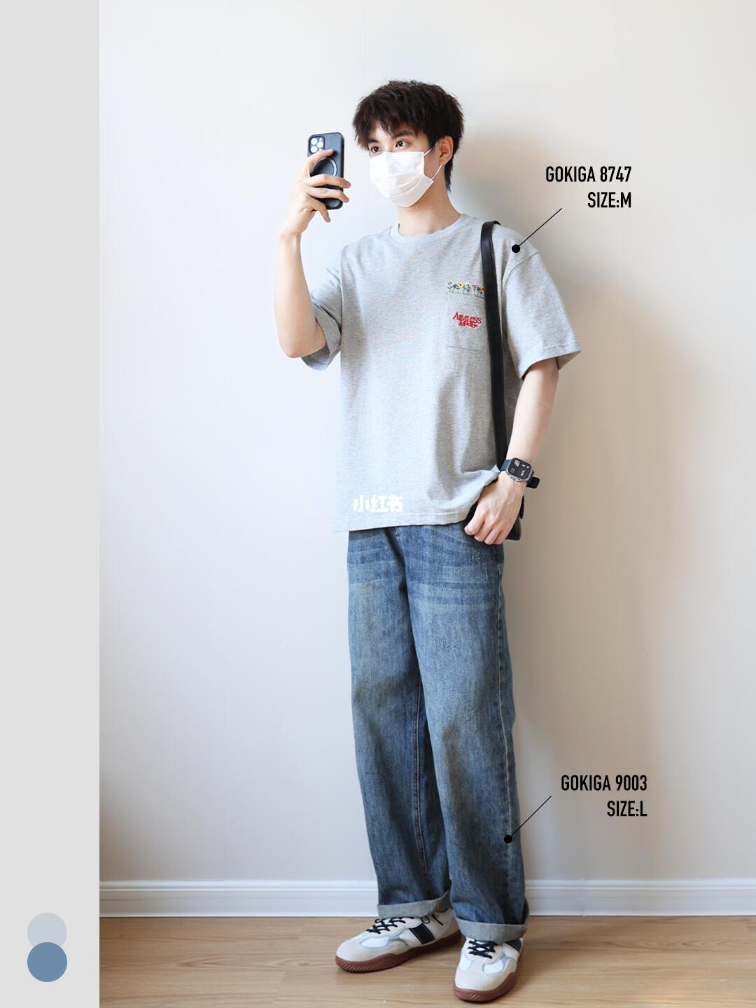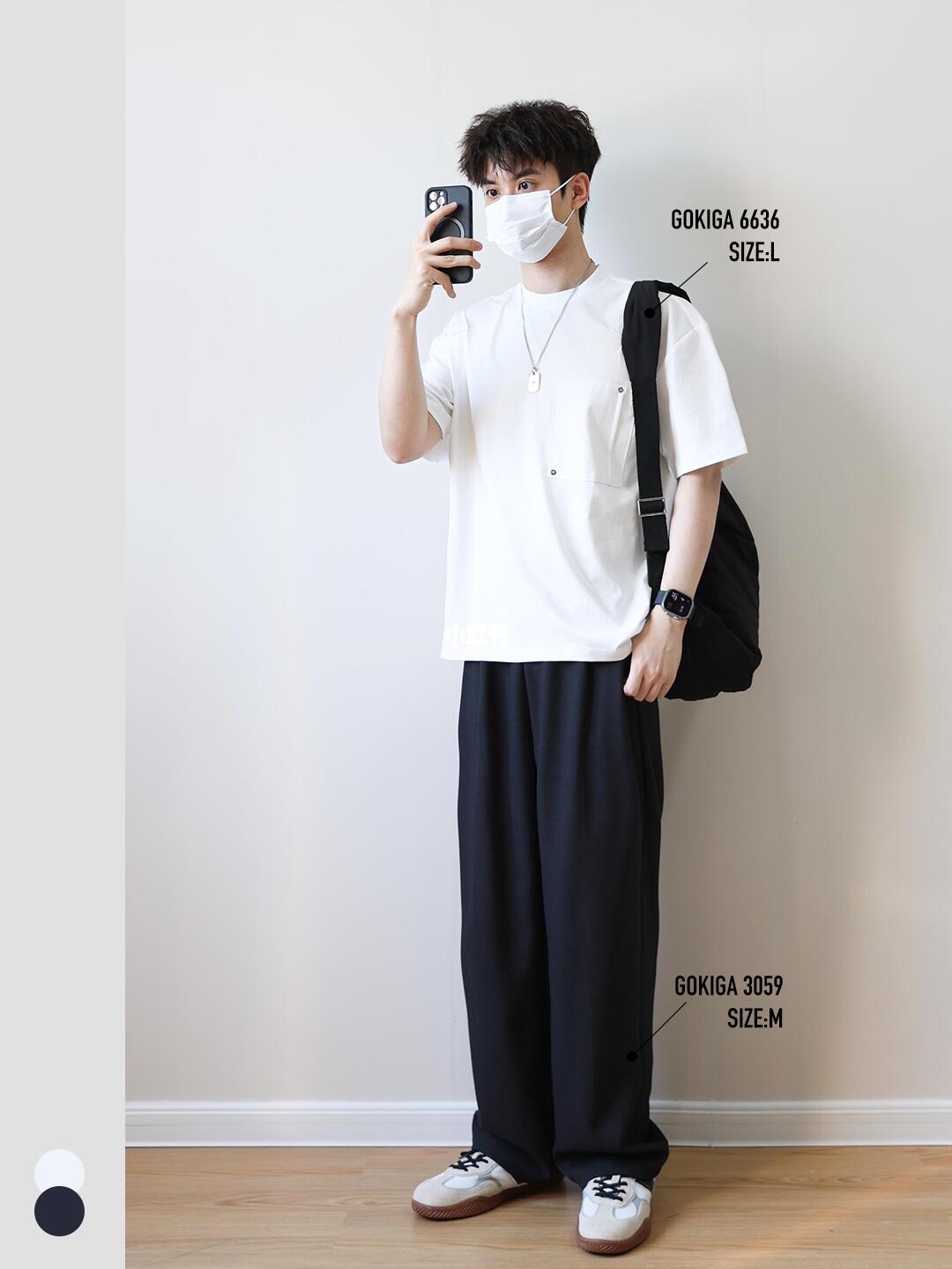 周六:白色短袖T恤+ 深灰休闲裤:松弛感满满!