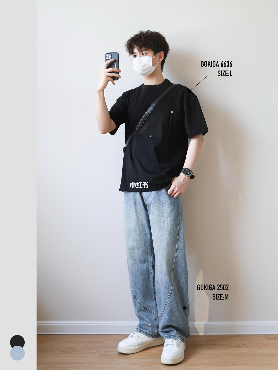 周五:黑色短袖T恤 + 浅蓝牛仔裤:简洁大方!
