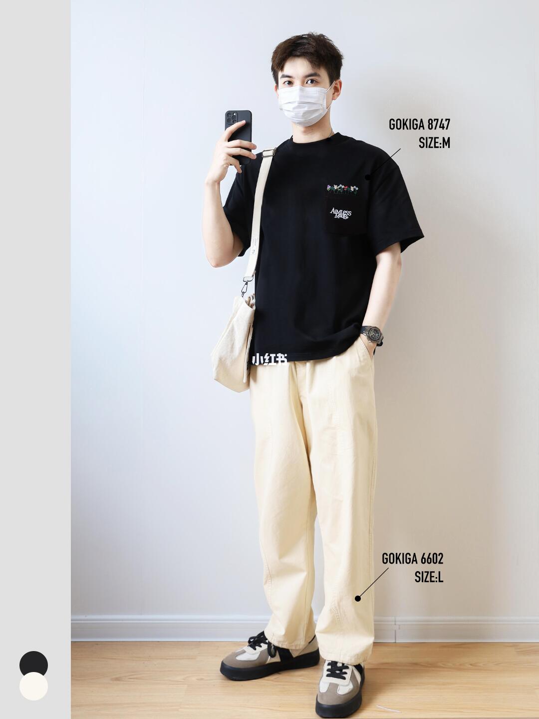 周日:黑色T恤 + 卡其工装裤:经典百搭!