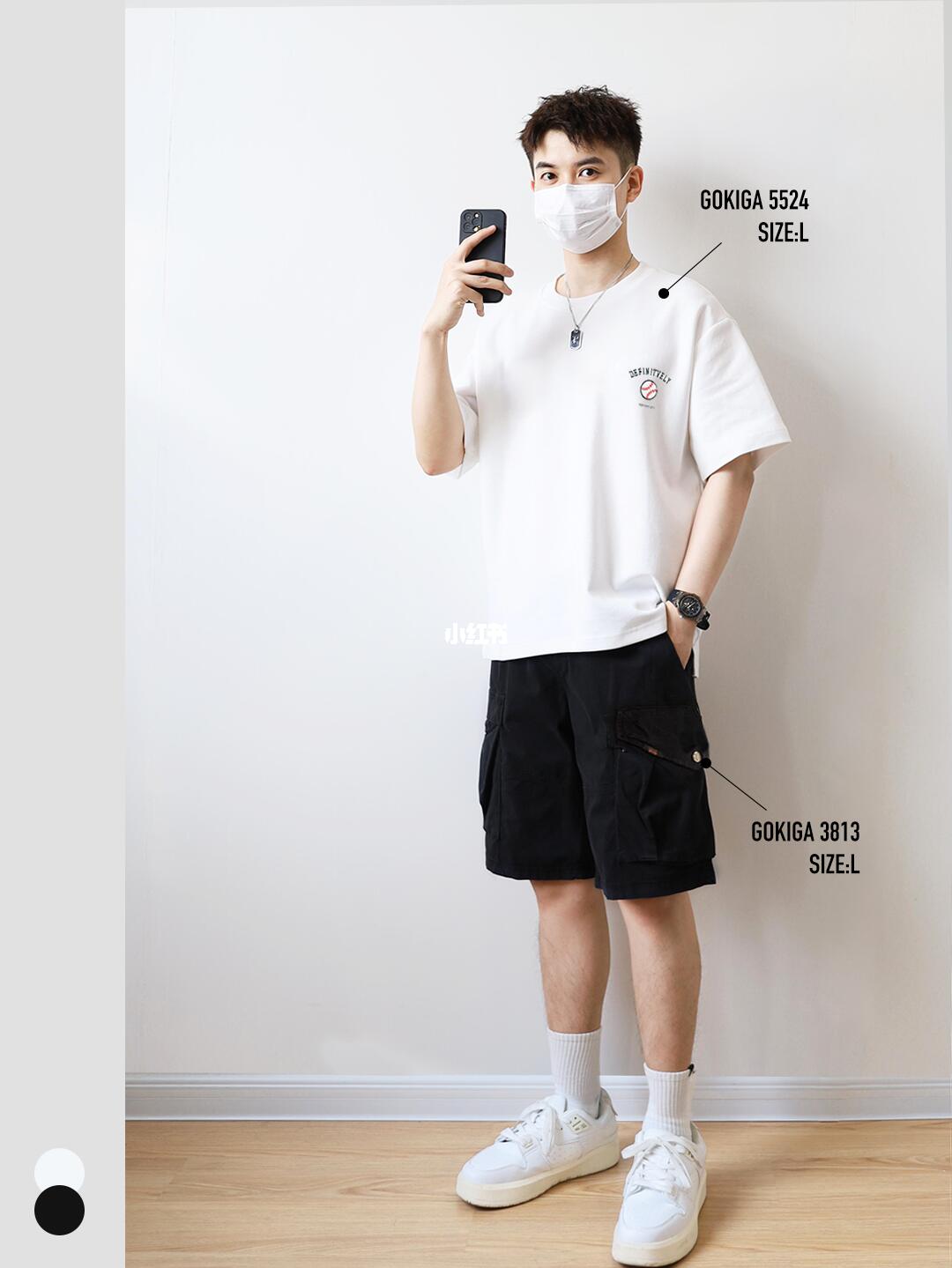 周四:白色短袖T恤 + 黑色工装短裤:清新自然!
