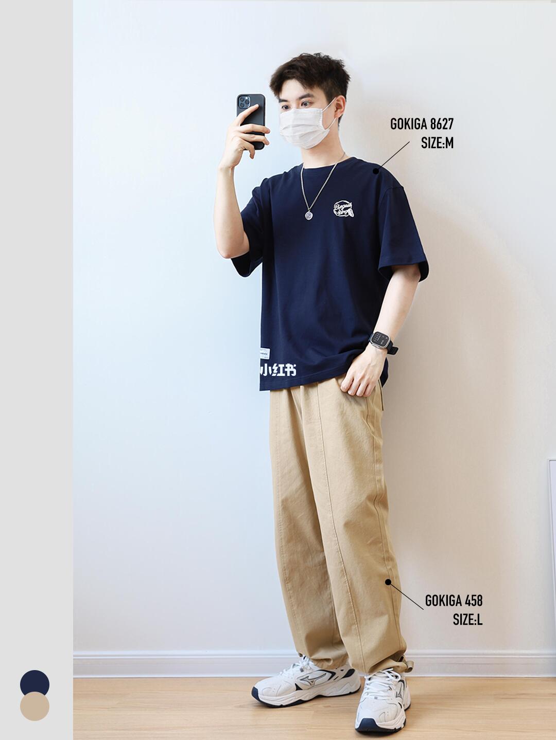 周三:藏青短袖T恤 +卡其工装裤:简约中带点随性!